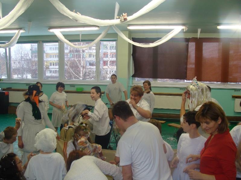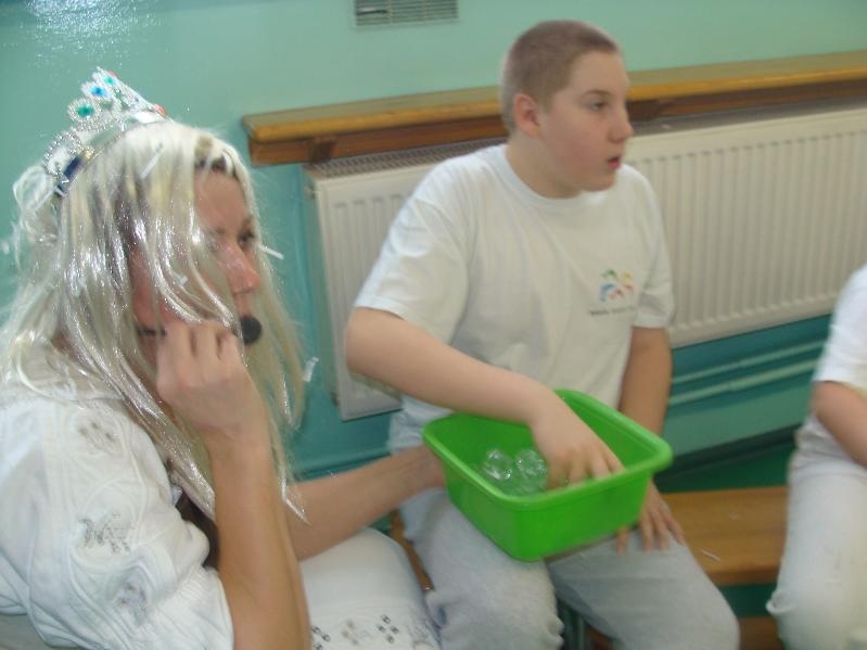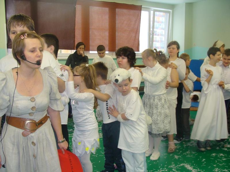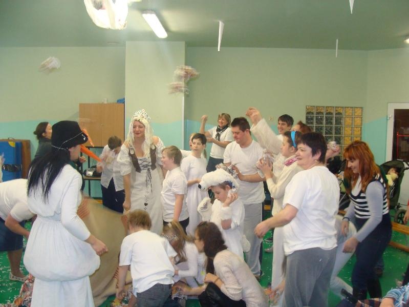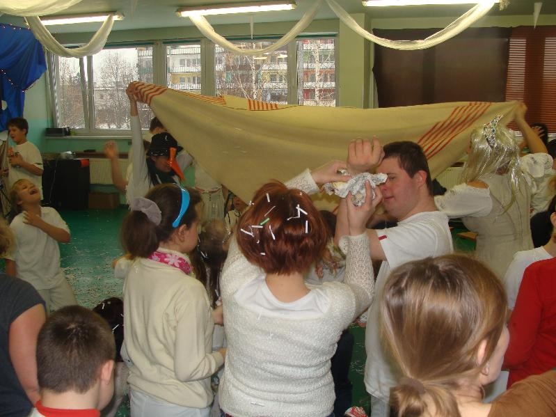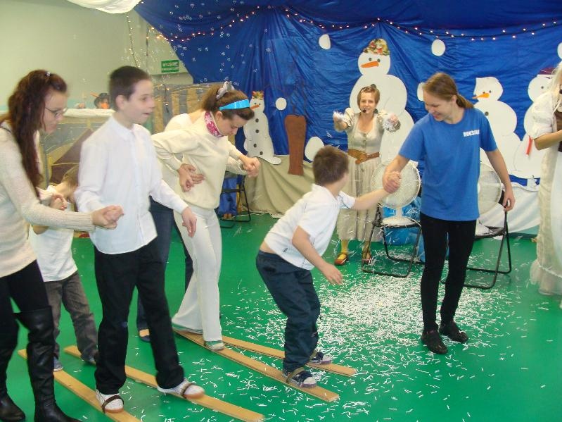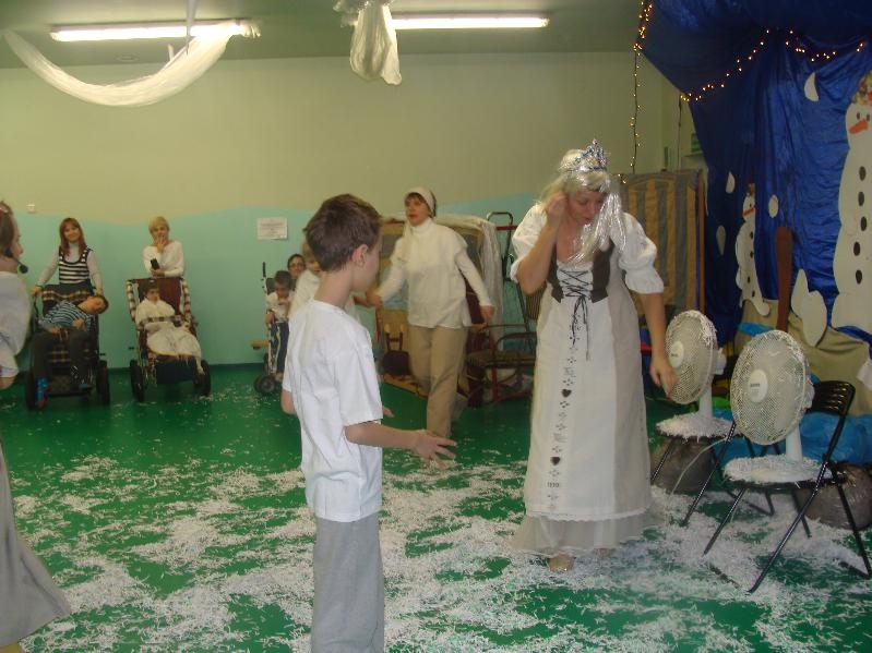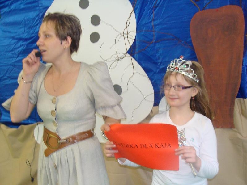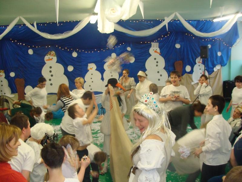 Dawno, dawno temu, za górami za lasami w pewnym miasteczku żyli sobie przyjaciele Kai i Gerda. Pewnego zimowego dnia Kai został porwany przez złą królową, Królową Śniegu… Tak rozpoczął się tegoroczny bal dla naszych uczniów. Gerda dzięki pomocy swoich przyjaciół pokonała pułapki jakie przygotowała dla niej zła królowa. Uczniowie bez większych trudności przeszli na nartach przez zamieć śnieżną, rozbili górę lodową, wygrali „bitwę: na śnieżki, wykonali również piękne laurki dla przyjaciela Gerdy. Dzięki mocy przyjaźni udało się uwolnić chłopca z zamku złej królowej, która widząc tyle radości otworzyła swe lodowate serce i zaprosiła wszystkich na bal. Bal u „Królowej Śniegu”, gdzie nie zabrakło śniegu i dobrej muzyki przy której wszyscy dobrze się bawili. Królowa widząc jak potrafią bawić się nasi uczniowie zaprosiła wszystkich za rok na kolejny bal na który będziemy czekać z niecierpliwością.
