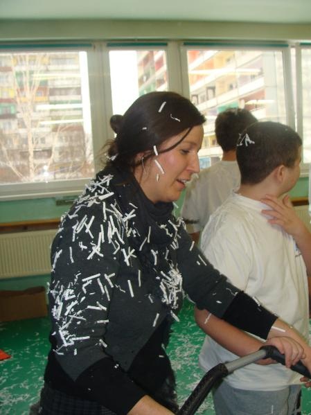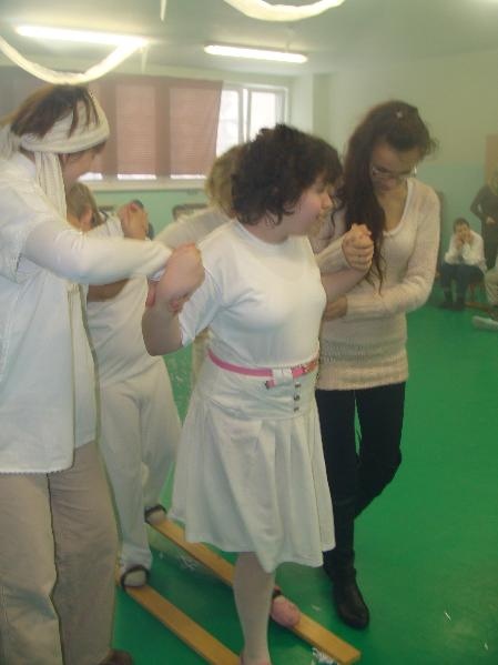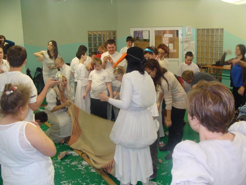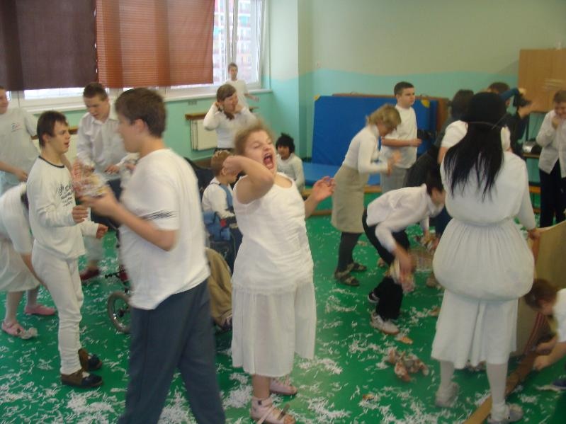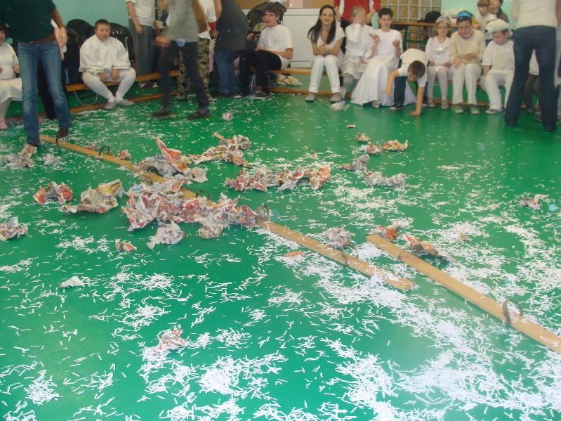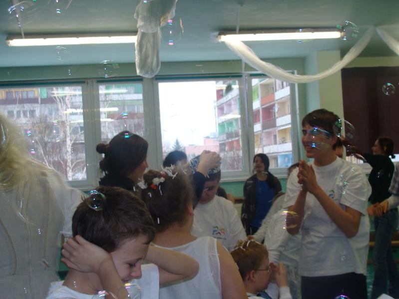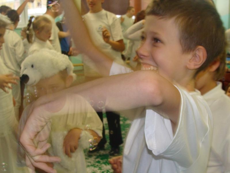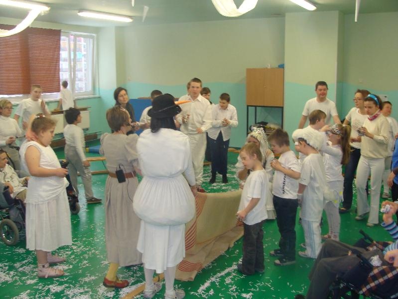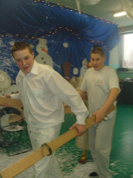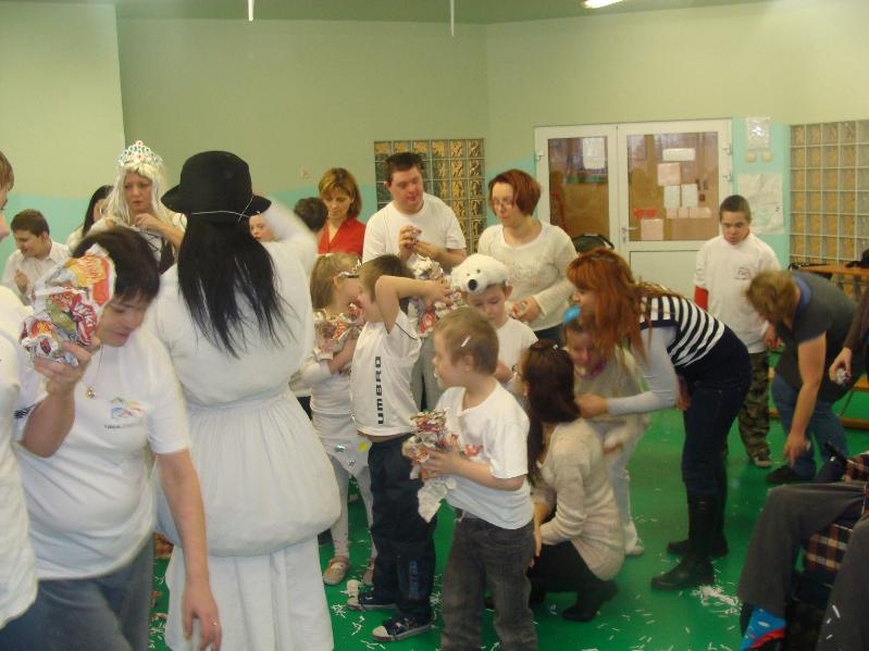 Dawno, dawno temu, za górami za lasami w pewnym miasteczku żyli sobie przyjaciele Kai i Gerda. Pewnego zimowego dnia Kai został porwany przez złą królową, Królową Śniegu… Tak rozpoczął się tegoroczny bal dla naszych uczniów. Gerda dzięki pomocy swoich przyjaciół pokonała pułapki jakie przygotowała dla niej zła królowa. Uczniowie bez większych trudności przeszli na nartach przez zamieć śnieżną, rozbili górę lodową, wygrali „bitwę: na śnieżki, wykonali również piękne laurki dla przyjaciela Gerdy. Dzięki mocy przyjaźni udało się uwolnić chłopca z zamku złej królowej, która widząc tyle radości otworzyła swe lodowate serce i zaprosiła wszystkich na bal. Bal u „Królowej Śniegu”, gdzie nie zabrakło śniegu i dobrej muzyki przy której wszyscy dobrze się bawili. Królowa widząc jak potrafią bawić się nasi uczniowie zaprosiła wszystkich za rok na kolejny bal na który będziemy czekać z niecierpliwością.