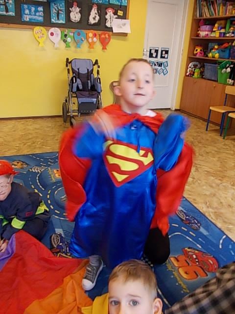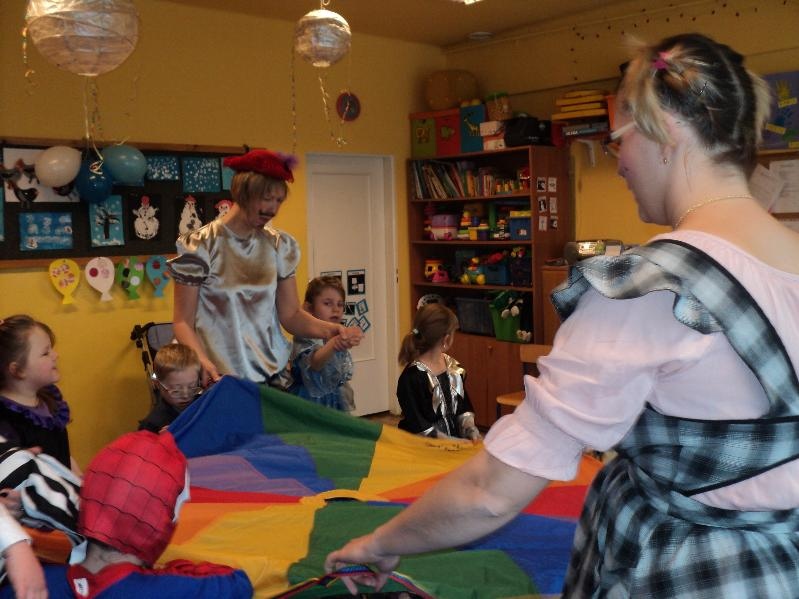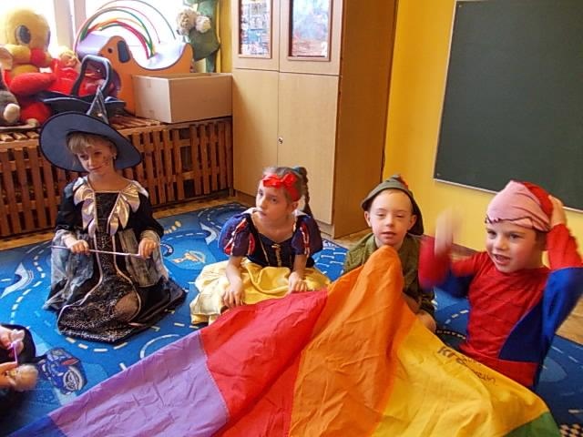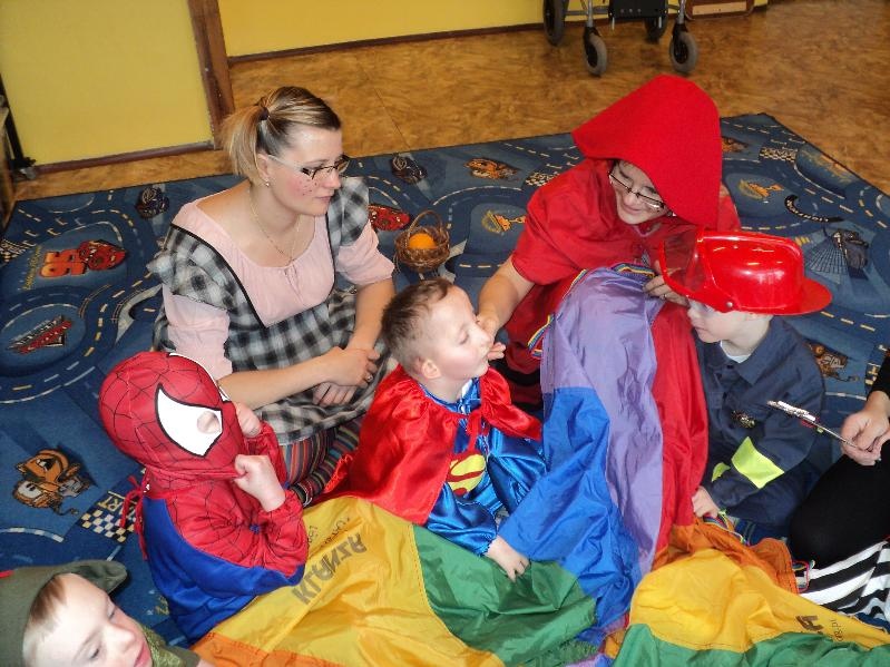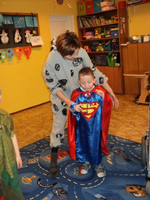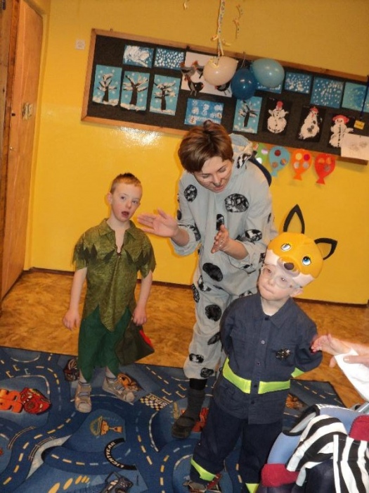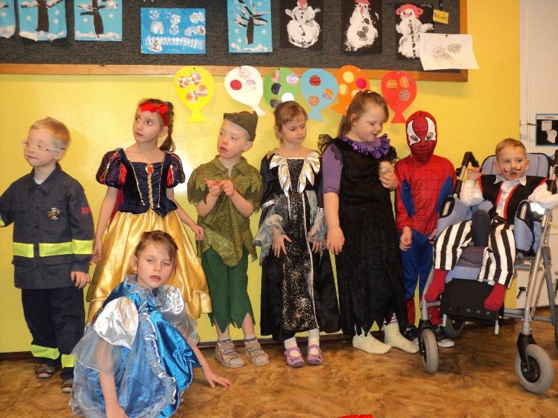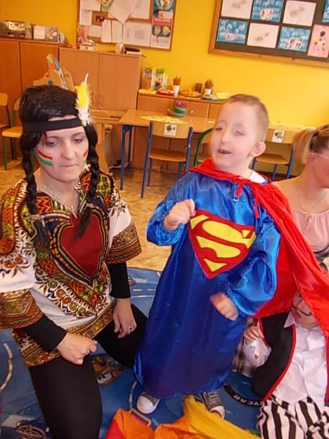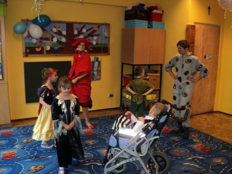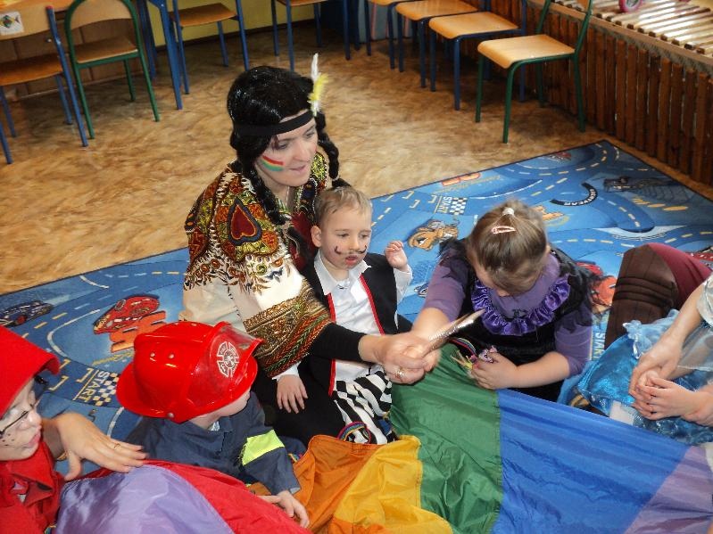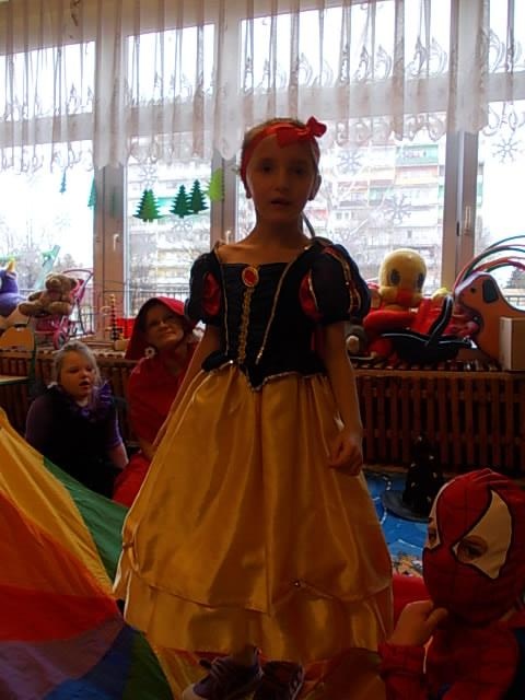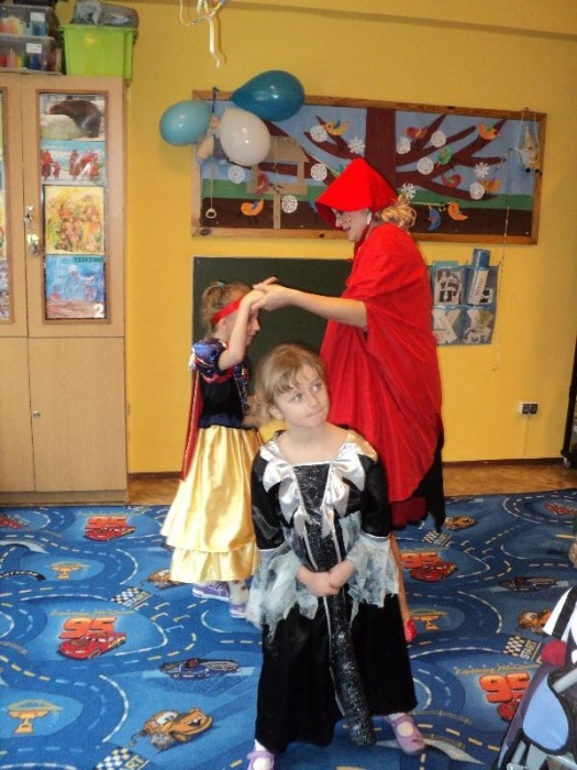 W piątek 1 lutego odbyła się zabawa karnawałowa w naszym przedszkolu. Dzieci zawitały do przedszkola w bajkowych przebraniach. Panie również przebrały się na tę okazję. W czarodziejskim świecie bajek można było spotkać „superbohaterów”, czarodziejki, królewny, Piotrusia Pana, Strażaka Sama, Pirata, ale także Indiankę Pocahontas, Czerwonego Kapturka, Pipi, Kota w Butach i Pieska Reksia. Bal przebiegał pod znakiem zabaw ruchowych. Na początku było przywitanie i prezentowanie swoich postaci. Dalej zabawy z chustą i balonikiem. I wreszcie znane i lubiane przez dzieci zabawy ruchowe. Zabawę uatrakcyjniło całe mnóstwo baniek mydlanych. Był poczęstunek, a także profesjonalna sesja zdjęciowa, którą wykonała P. Bożena Burda