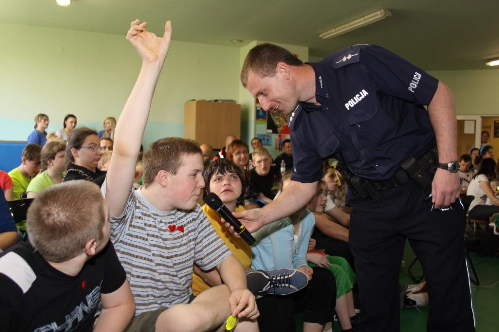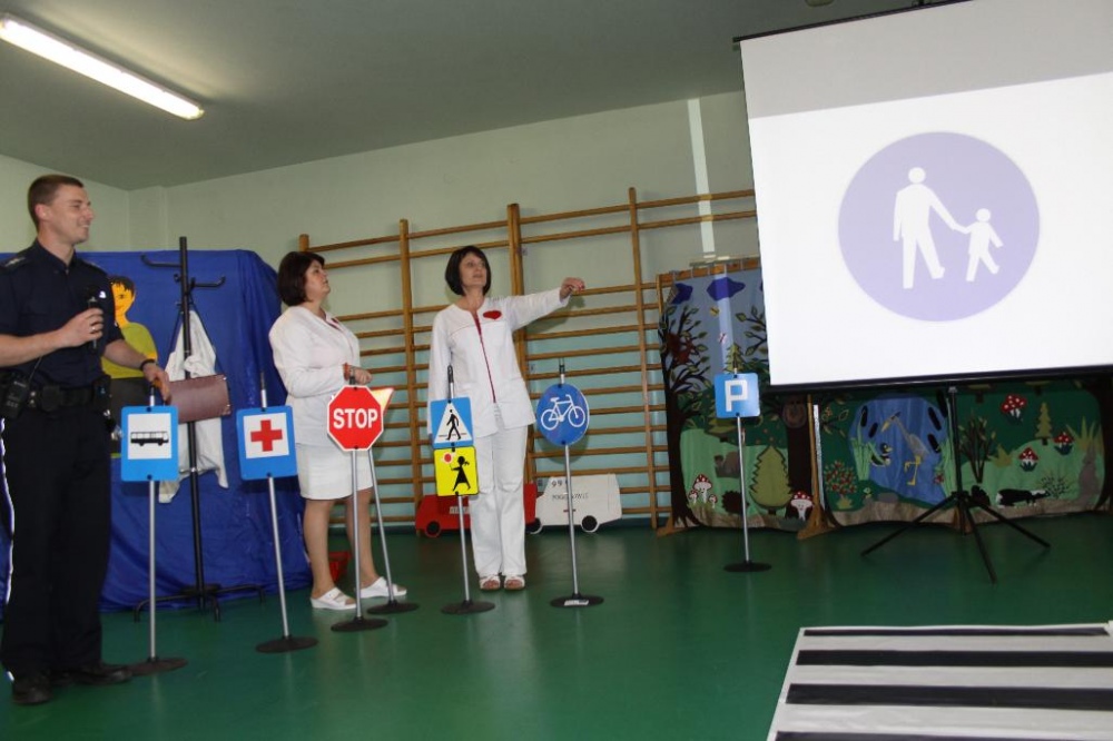 Wszystko przeplatane było piosenkami o zdrowiu, połączone z ćwiczeniami. Do wspólnej zabawy angażowani byli również członkowie jury. W międzyczasie pani Ula z podopiecznymi przygotowała wiosenne kanapeczki i każdy z uczestników mógł je degustować. Na zakończenie konkursu wszystkie klasy z wychowawcami przechodziły przez pasy, przy sygnalizacji świetlnej, którą uruchamiał policjant. Za aktywny udział w konkursie, przygotowaną pracę plastyczną każda klasa otrzymała dyplom, nagrody i soczki.