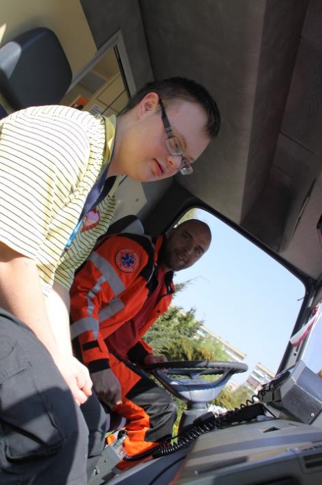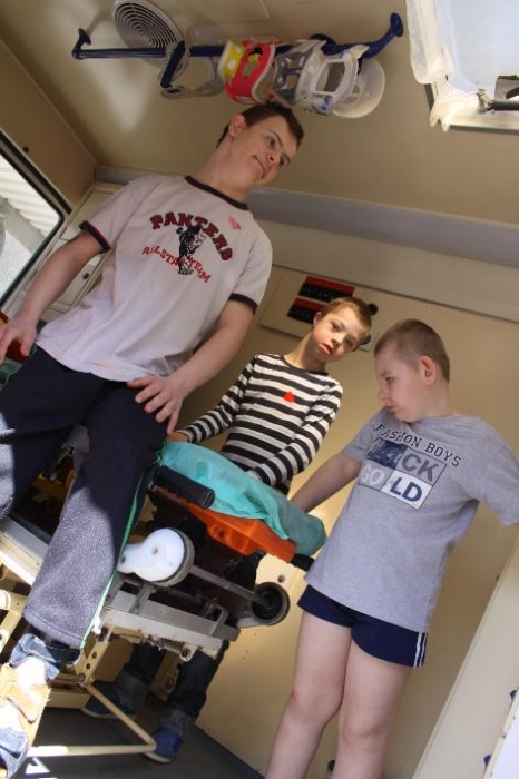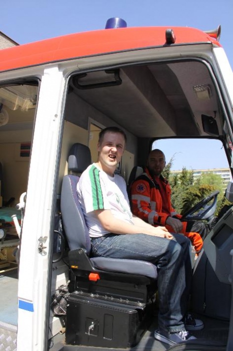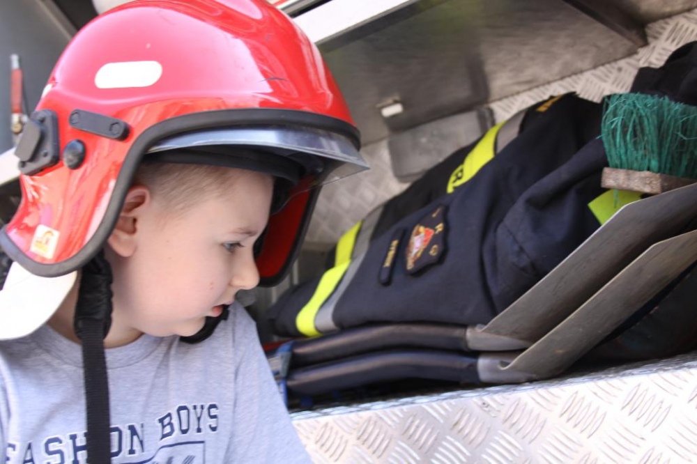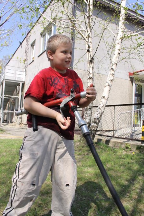 Największą atrakcja tego konkursu jak co roku były samochody specjalne : straż, policja i ambulans, które na parkingu szkolnym były udostępnione naszym podopiecznym. Każdy mógł usiąść, dotknąć sprzętu, a nawet ubrać się w strój strażaka, założyć kask, polać wodą z węża strażackiego, posłuchać jak głośno brzmią syreny.