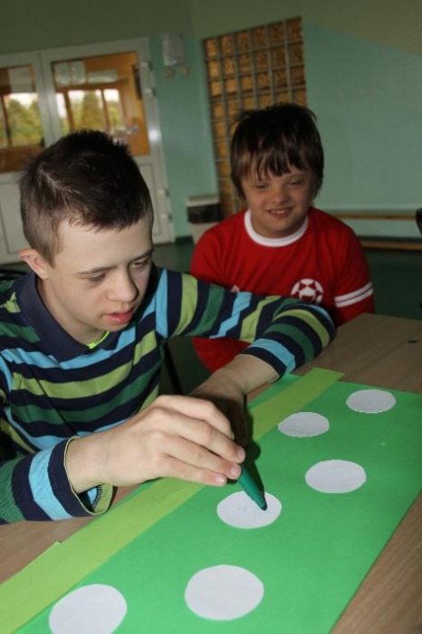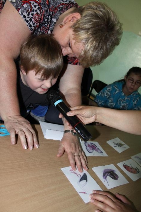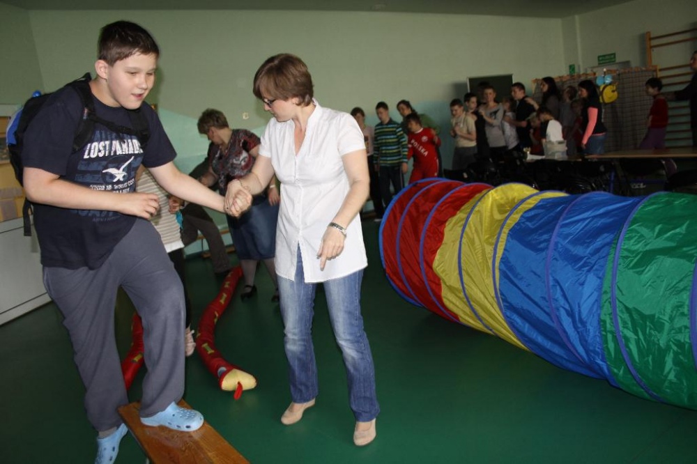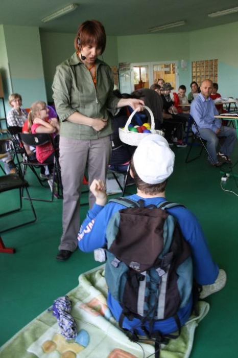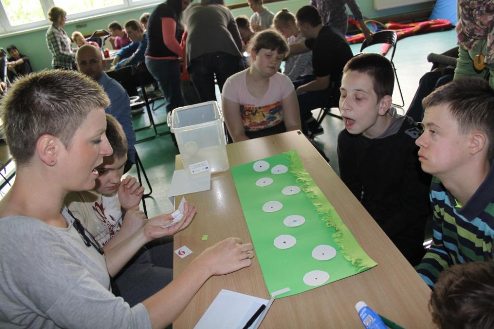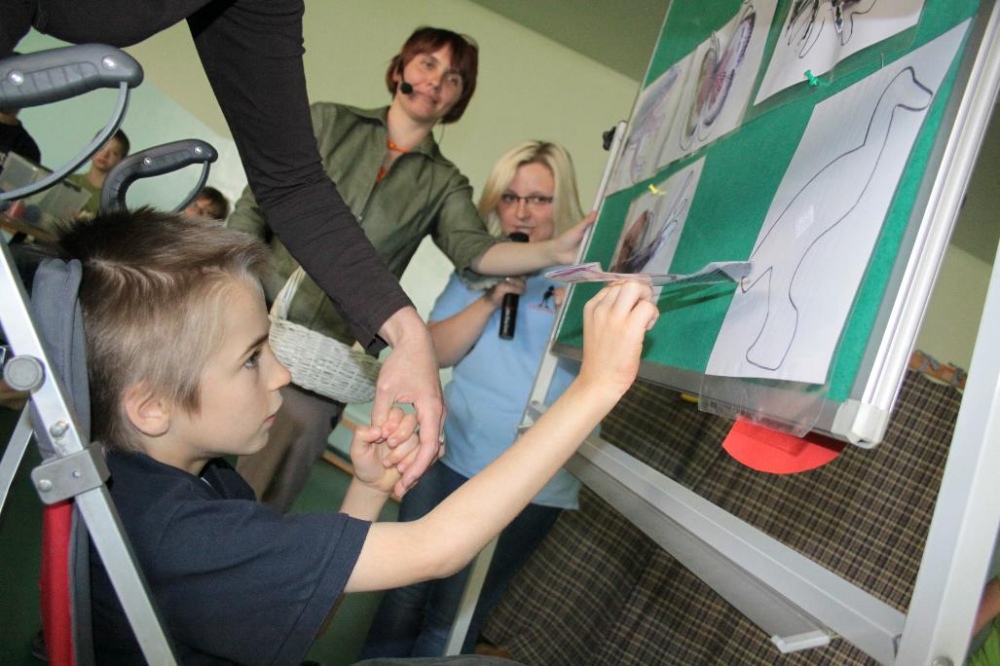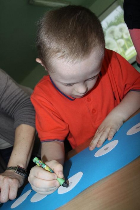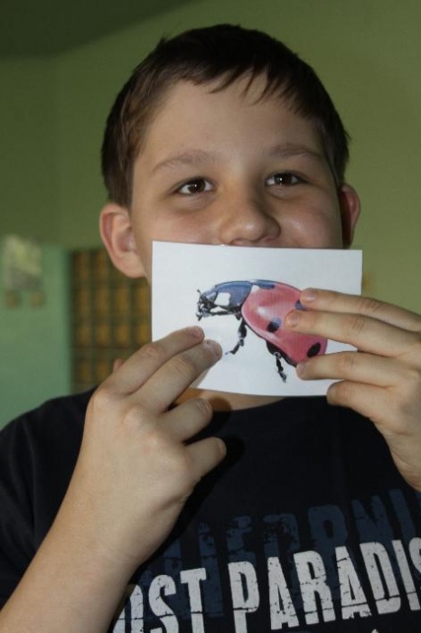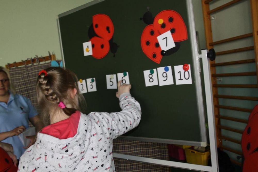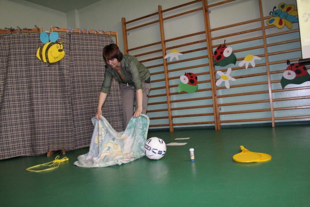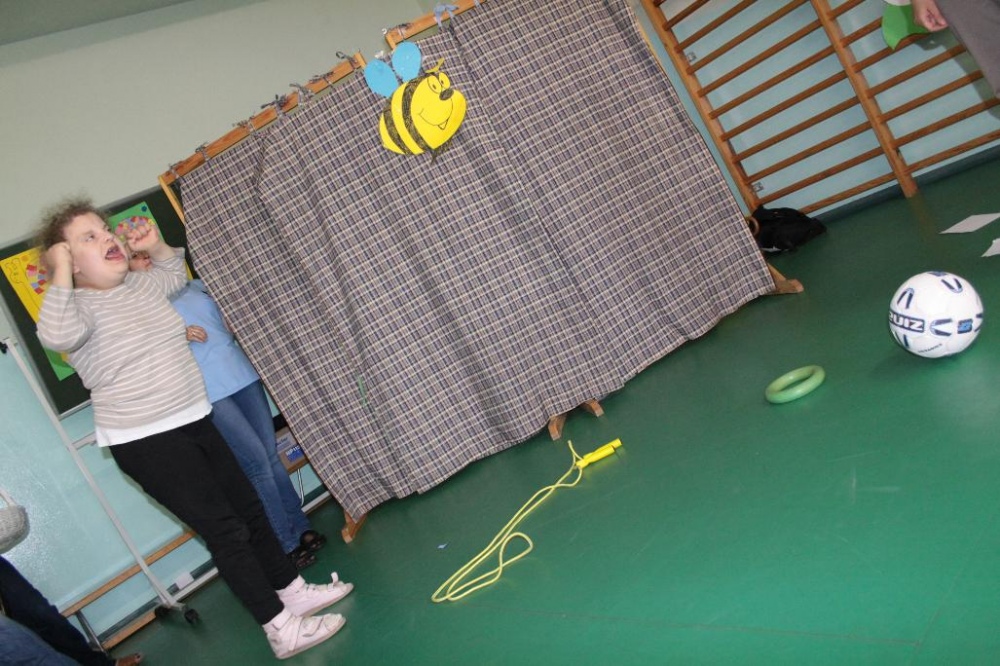 Spakowaliśmy więc plecak i w drogę. Po przejściu przez mostek, tunel i ścieżkę z kamieni dotarliśmy do celu. Była nim piękna, majowa łąka. Na łące można było podziwiać kwiaty i zwierzęta, a przy okazji wykazać się umiejętnościami: liczenia, dopasowywania kształtu do konturu, dobierania obrazka do filmu, cięcia i darcia papieru oraz rysowania.