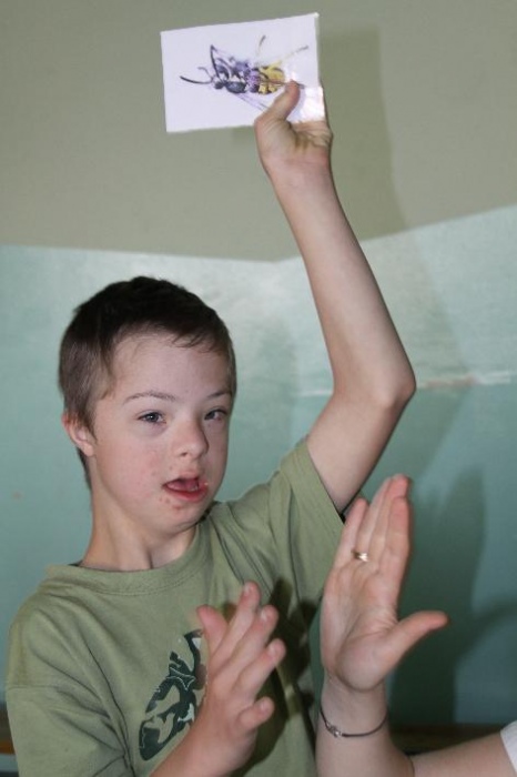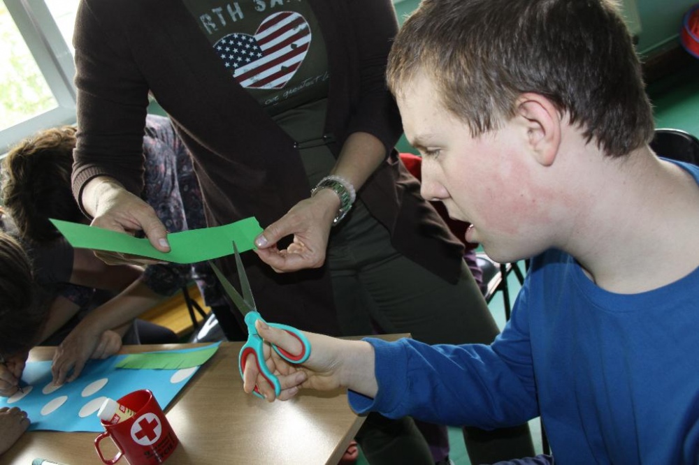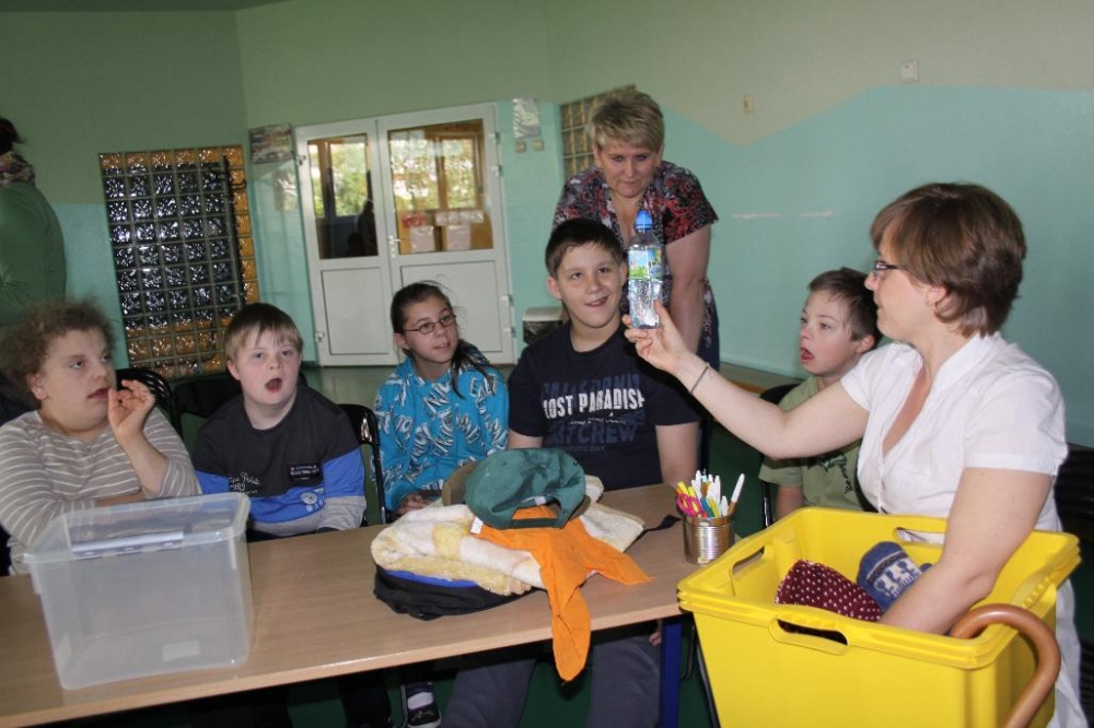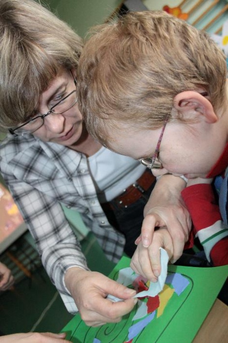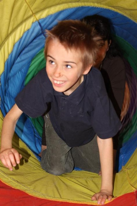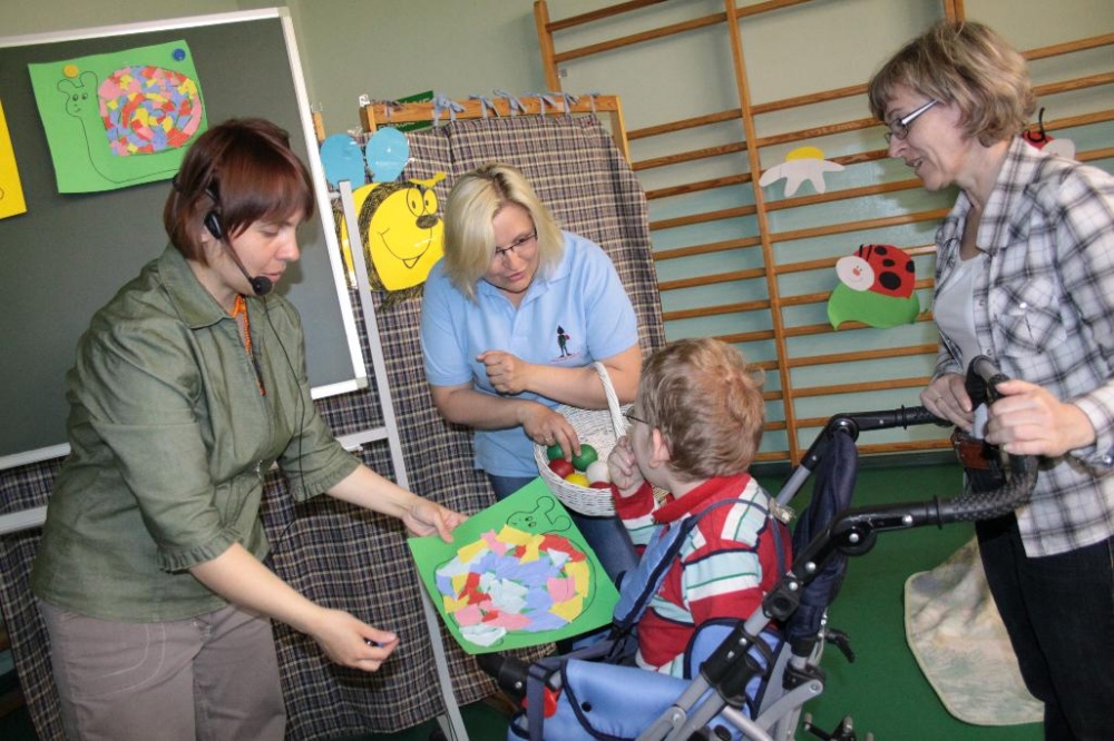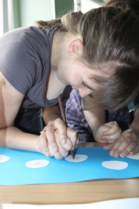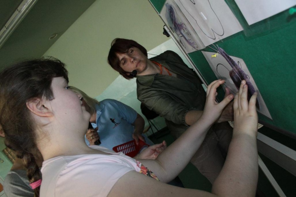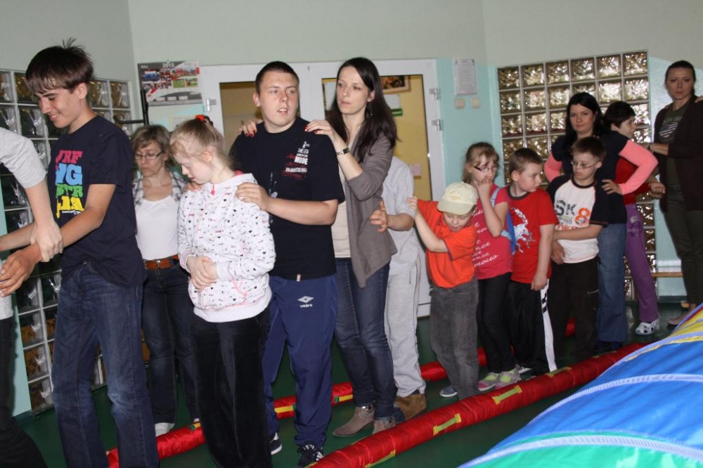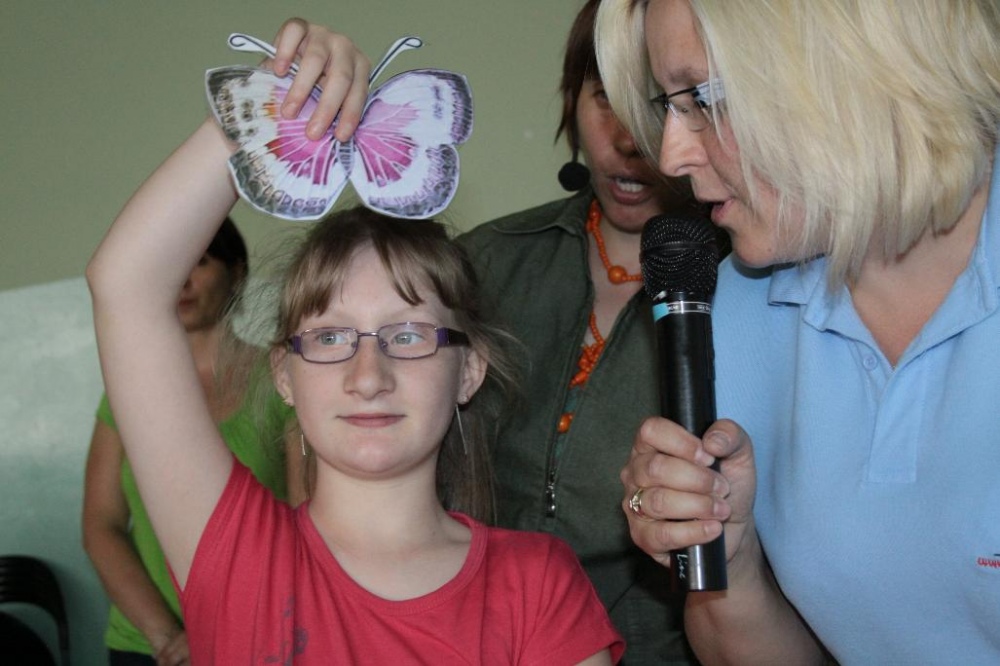 Spakowaliśmy więc plecak i w drogę. Po przejściu przez mostek, tunel i ścieżkę z kamieni dotarliśmy do celu. Była nim piękna, majowa łąka. Na łące można było podziwiać kwiaty i zwierzęta, a przy okazji wykazać się umiejętnościami: liczenia, dopasowywania kształtu do konturu, dobierania obrazka do filmu, cięcia i darcia papieru oraz rysowania.