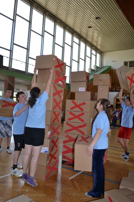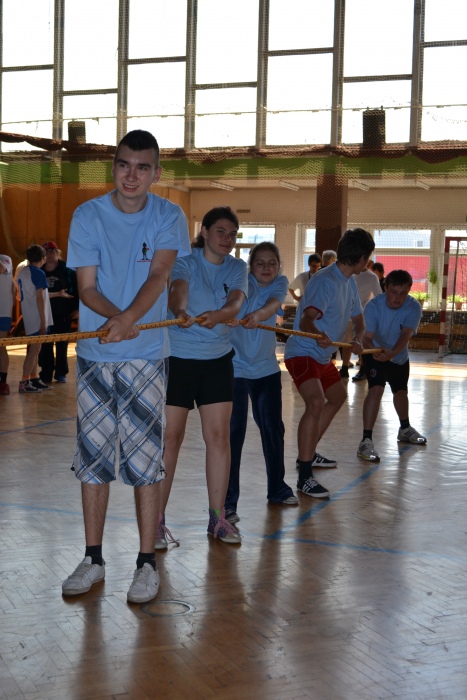 Po uroczystym zapaleniu znicza i wciągnięciu flagi przystąpiliśmy do rywalizacji indywidualnych. Ze sportowym zacięciem podchodziliśmy do różnych stanowisk, walczyliśmy i z radością zdobywaliśmy medale. Radości i zapału wystarczyło aż do kończących imprezę konkurencji grupowych- budowania piramidy i przeciągania liny.