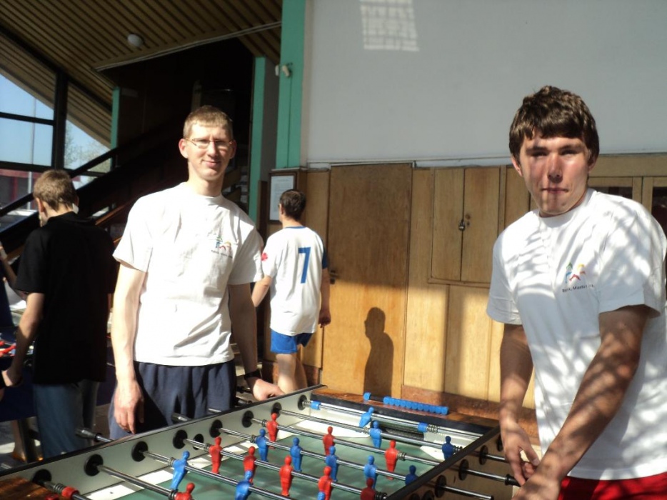 Piłkarzyki: Andrzej Motyka i absolwent naszej szkoły Mariusz Dudzik.