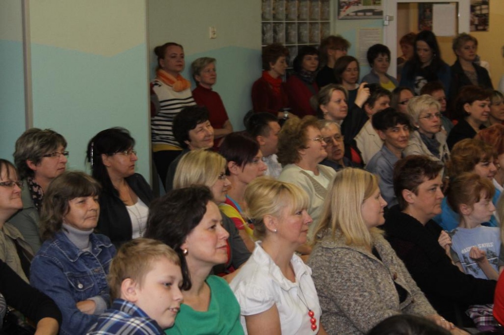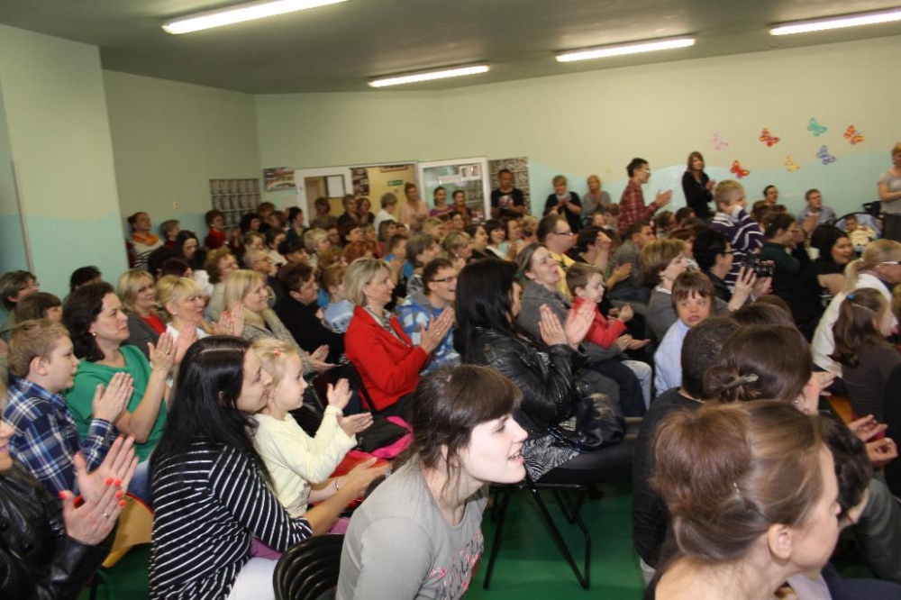 podczas szkolnej uroczystości z okazji Dnia Matki.