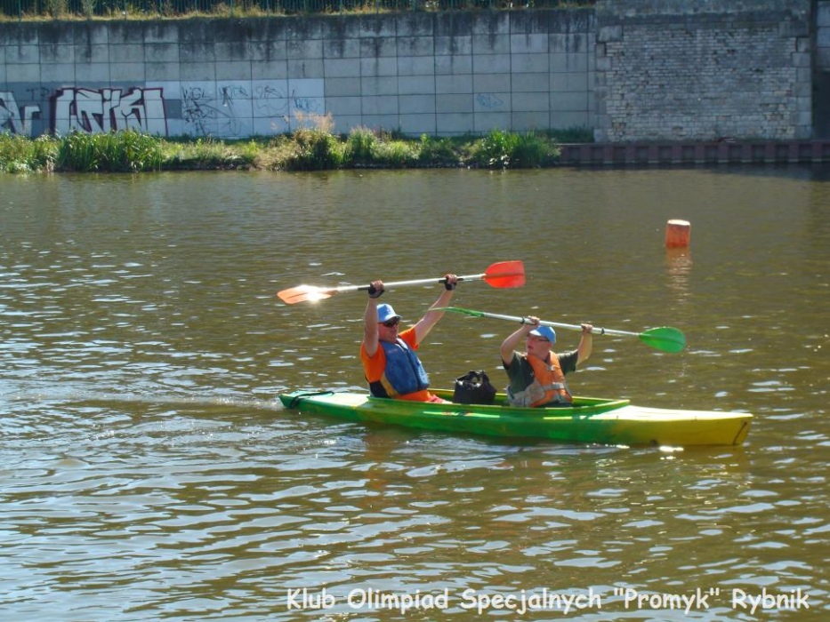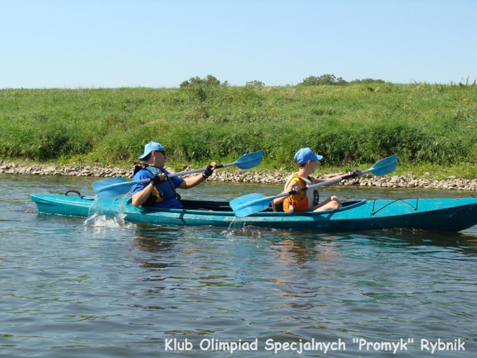 Gimnazjalisci: Sandra, Klaudia, Alan, Andrzej, Dominik, Daniel oraz uczniowie podstawówki - najmłodsi uczestnicy spływu: Kamil, Dawid i Kacper wzięli udział w XI Regionalnym Spływie Kajakowym Olimpiad Specjalnych Racibórz - Kędzierzyn - Koźle 2013.