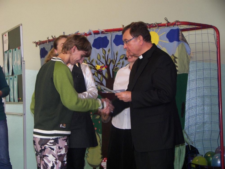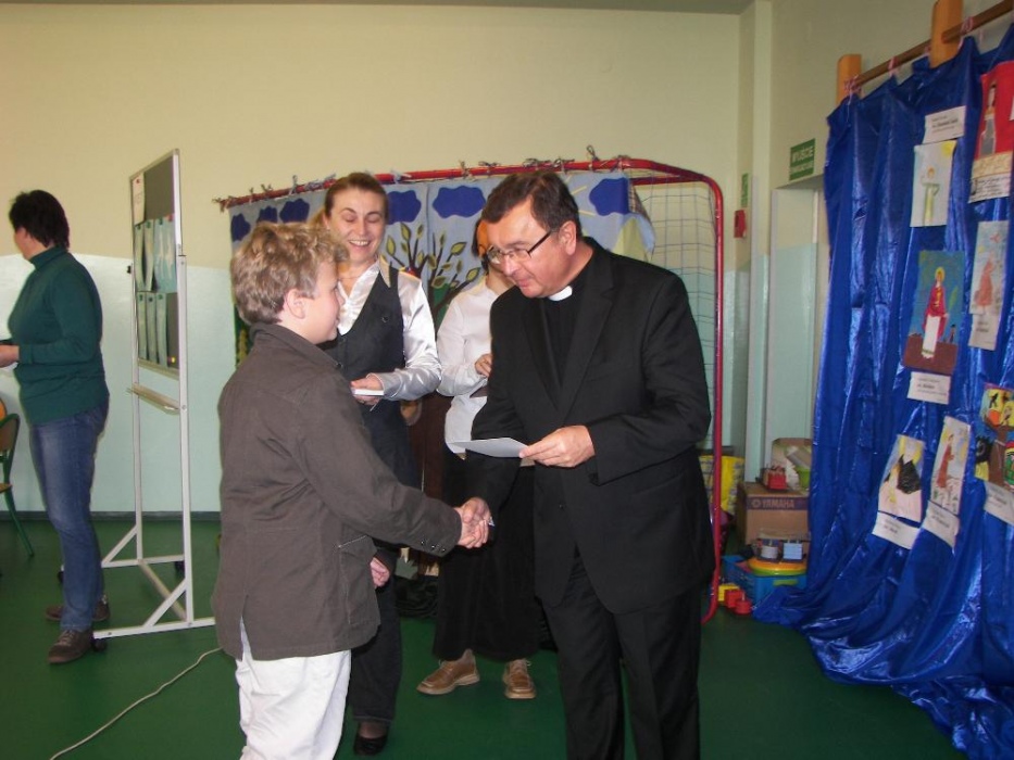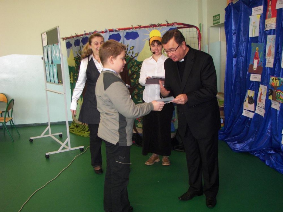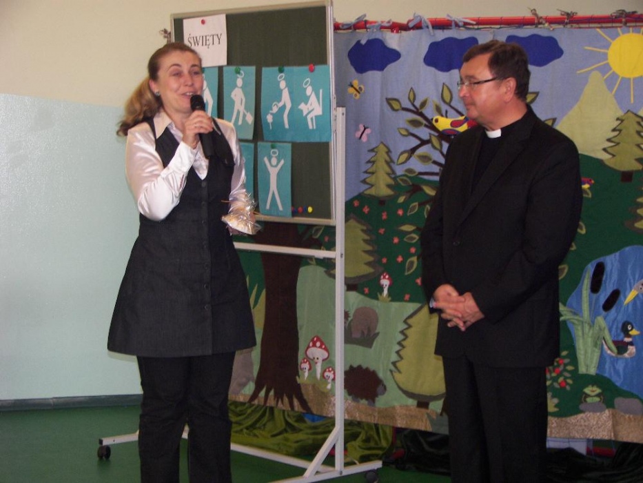 Podczas spotkania wspólnie zastanawialiśmy się jak zostać świętym. Pomogły w tym prezentacje sylwetek kilku świętych oraz zadania konkursowe, które wymagały współpracy wszystkich uczestników. Efekt, to: „przepis na świętego”: pomaga innym, jest pracowity, szanuje przyrodę, chętnie się uczy, jest dobrym kolegą, modli się, jest radosny i cieszy się życiem. Jak widać przepis jest możliwy do realizacji przez każdego z nas. W spotkaniu wzięli udział ksiądz dziekan dekanatu Rybnik Karol Matera oraz ksiądz Mariusz Dronszczyk – Dziękujemy za przybycie.