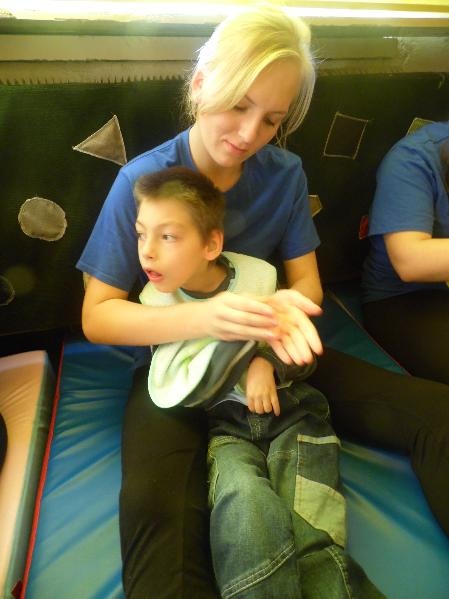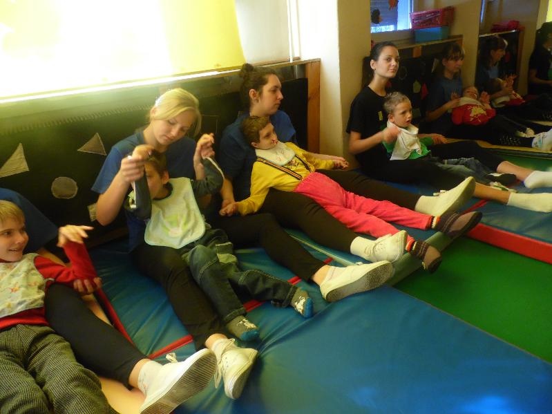W oddziałach rewalidacyjno-wychowawczych (I i II) przeprowadzono ćwiczenia oparte o kontakt z ciałem. Zastosowano Program Aktywności świadomości ciała ,kontakt i komunikacja opracowany przez M.Ch Knillów. Podstawowym celem jest rozbudzenie aktywności dziecka i zachęcanie do działania, które oparte są na tworzeniu sposobności do doświadczania i nabywaniu podstawowych informacji o sobie. W ćwiczeniach pomogły masażystki z Centrum Kształcenia Zawodowego i Ustawicznego Województwa Śląskiego w Rybniku. Na zajęcia zostały zaproszone przedszkolaki.
