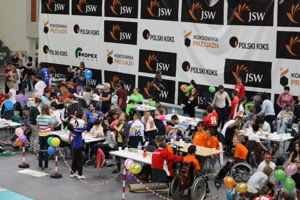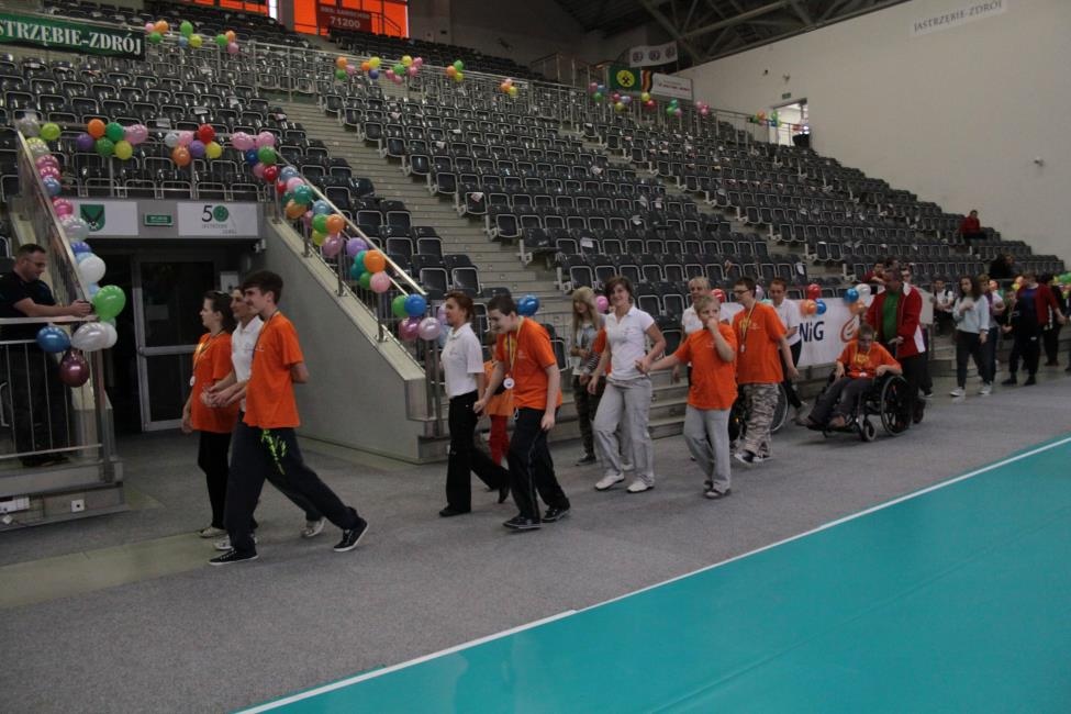 Dnia 30 października 10 uczniów naszej szkoły - sportowców Klubu Olimpiad Specjalnych "Promyk" Rybnik, miało okazję wziąść udział w XII Regionalnym Dniu Treningowym Programu Aktywności Motorycznej Olimpiad Specjalnych Jastrzębie Zdrój 2013. Gospodarzem imprezy tradycyjnie był Klub Olimpaid Specjalnych "Iniemamocni". Należy jednak dodać, że tym razem uczestnicy Programu MATP mieli niecodzienną okazję wystąpić na Hali Widowiskowo - Sportowej, na której na co dzień trenuje i gra jedna z najlepszych polskich drużyn siatkarskich - Jastrzębski Węgiel! Zarówno nasi uczniowie, jak i pozostali sportowcy, bez kompleksów zaprezentwoali swoje, zdobyte podczas treningów umiejętności!