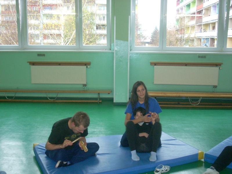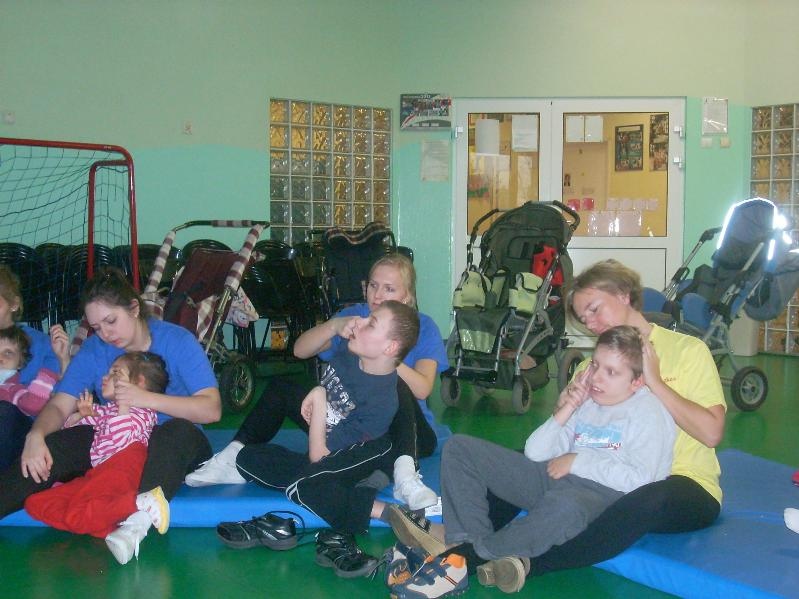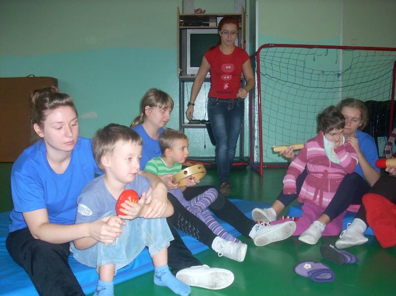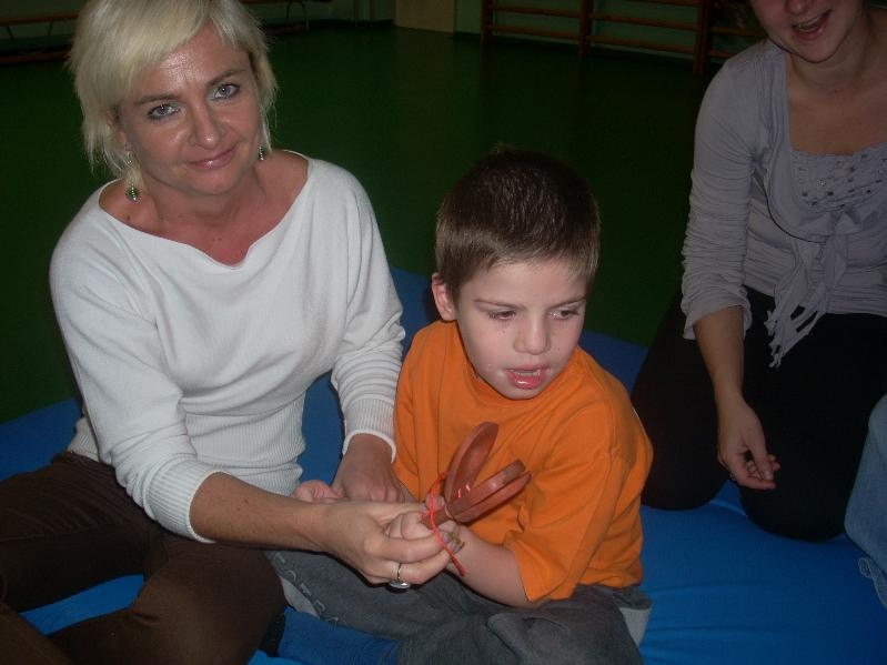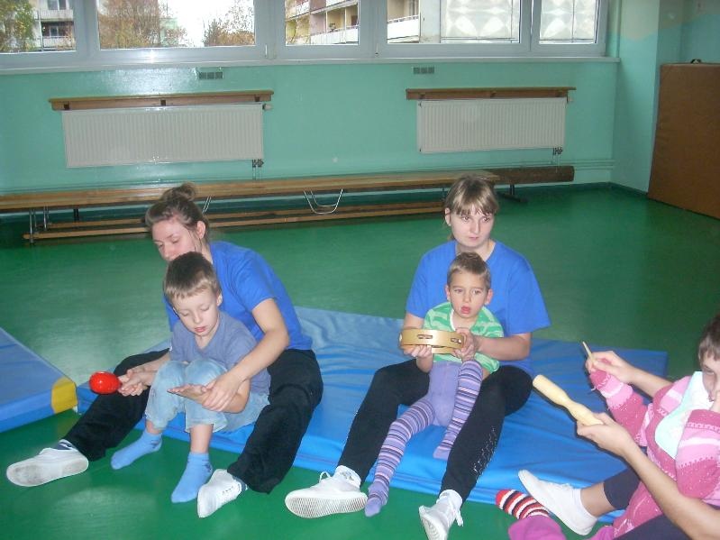 Dnia 5 listopada podopieczni oddziałów Rewalidacyjno-Wychowawczych (I, II, III) brali udział w ćwiczeniach usprawniających motoryką dużą i małą M. Ch. Knillów. Zajecia zostały urozmaicone poprzez śpiewanie piosenek z wykorzystaniem instrumenów muzycznych. Do wspólnej zabawy zaproszono dzieci z naszego przedszkola.