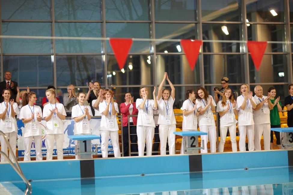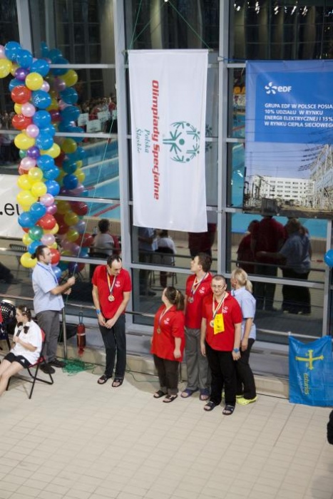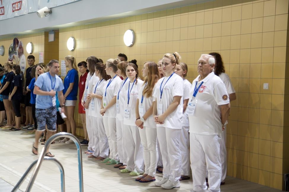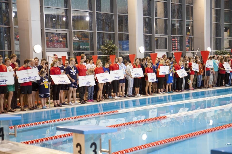 Podczas Ceremonii Zakończenia Zawodów wszyscy troszkę;) zmęczeni, ale jednocześnie szczęśliwi i uśmiechnięci wysłuchali jeszcze słów podziękowań i podziwu Sędziego Głównego Pana Aleksandra Bieleckiego. Jego uwagi odnośnie czynionych przez naszych pływaków postępów, które jako wieloletni uczestnik zawodów w roli sędziego mógł zaobserwować, dały motywację sportowcom ich trenerom, rodzicom do dalszych ciężkich treningów, a..organizatorom zawodów do dalszego podejmowania wysiłku przy umożliwianiu prezentacji umiejętności pływackich podczas organizowanych zawodów.