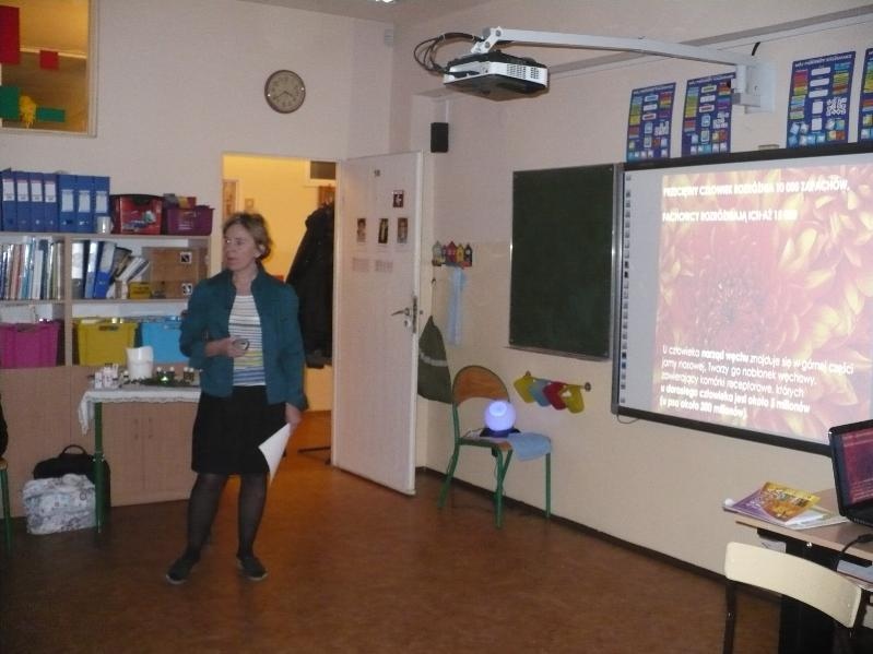 13 listopada odbyło się w naszej szkole szkolenie pt. „Aromaterapia na co dzień”. Szkolenie było skierowane dla wszystkich chętnych nauczycieli i rodziców. Uczestnicy usłyszeli wiele ciekawostek dotyczących węchu. Dowiedzieli się na czym polegają zabiegi aromaterapeutyczne. Poznali właściwości i wskazania olejków najczęściej wykorzystywanych w aromaterapii a także wiele gotowych recept wykorzystania powyższych olejków w powszechnych dolegliwościach zdrowotnych (nerwice, przeziębienia…) i kosmetycznych. Mieli możliwość poznać zapachy najskuteczniejszych w terapii olejków z drzewa herbacianego, lawendy, grejpfruta, tymianku i in.. Był czas również na kawę i ciacho.