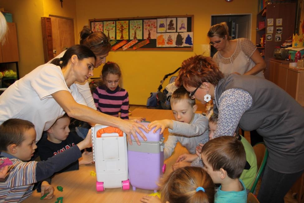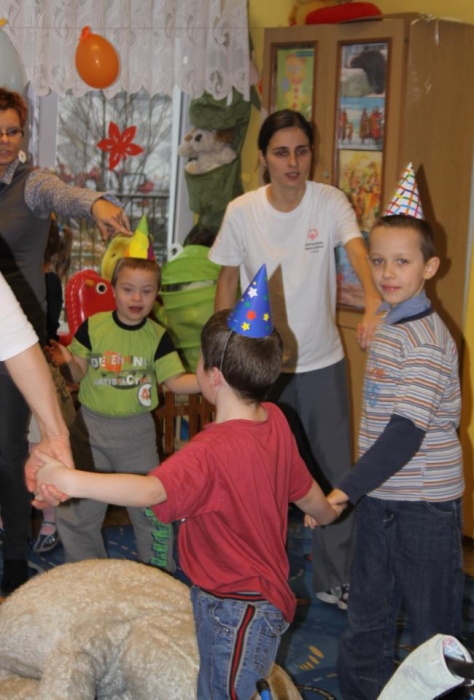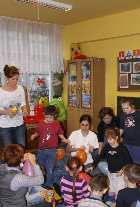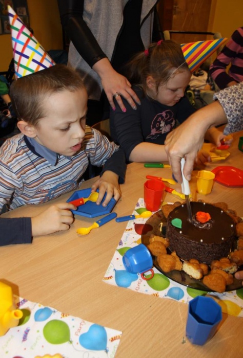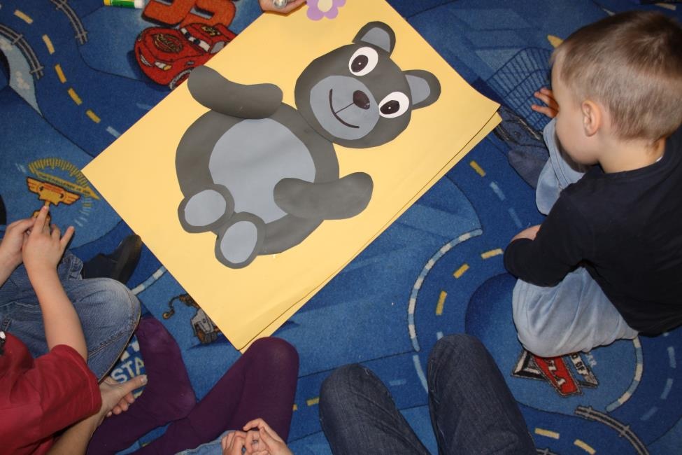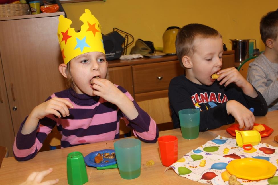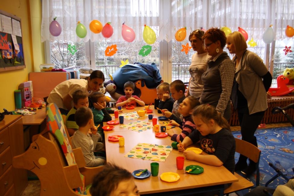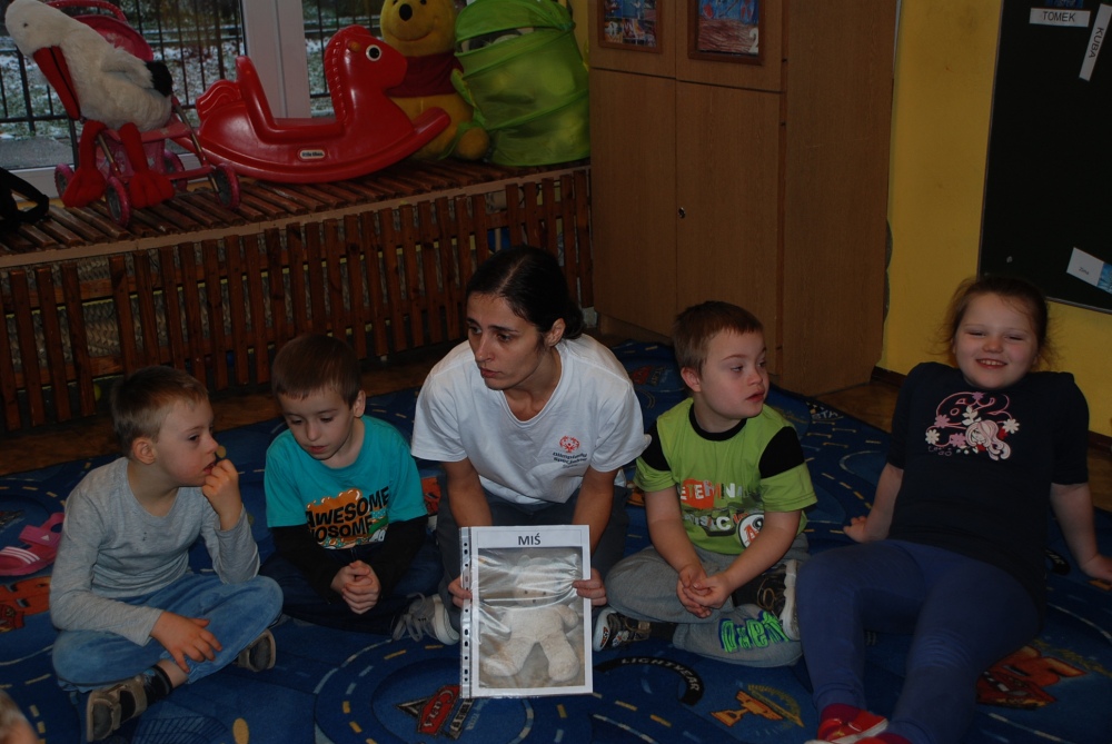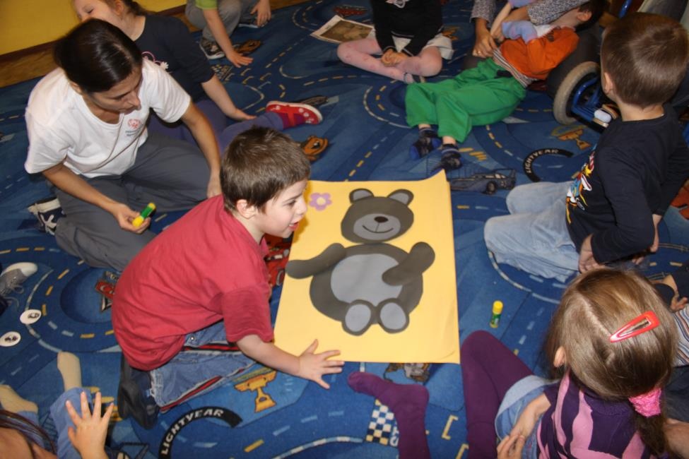 Dzieci zaczęly od przygotowania laurki z podobizną Misia i życzeniami. Następnie zabrały się do dekorowania sali: dmuchały balony, wieszały serpentyny. Potem trzeba było przygotować "poczęstunek" - dzieci zrobiły ciastelinkowe ciasteczka i przygotowały odpowiednią na deser zastawę stołową. Pozostało czekać na upragnionego gościa...