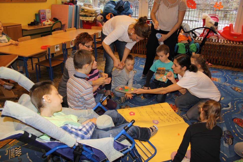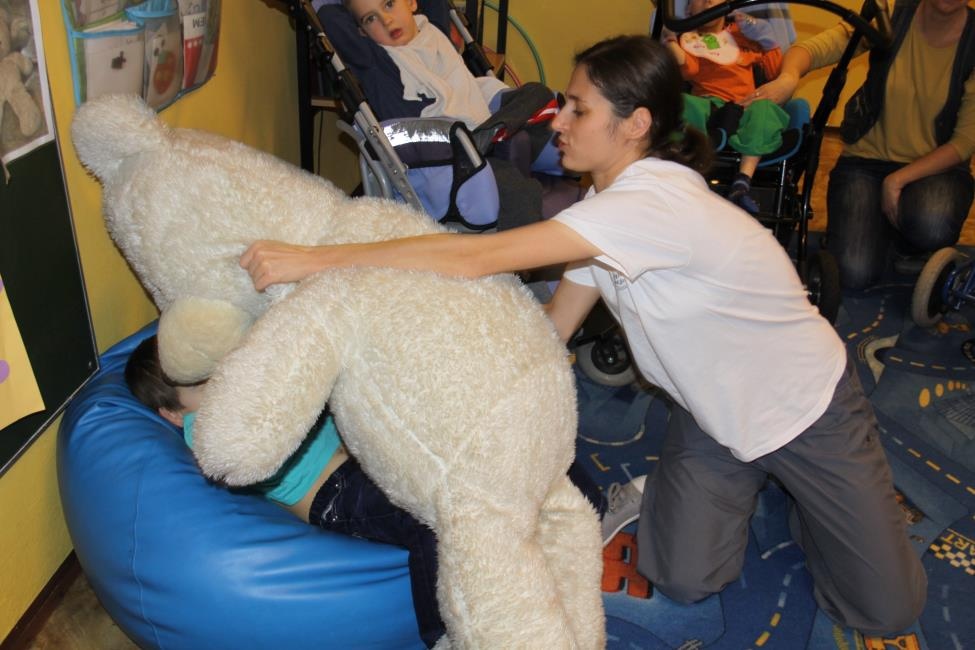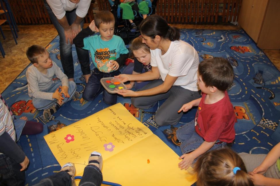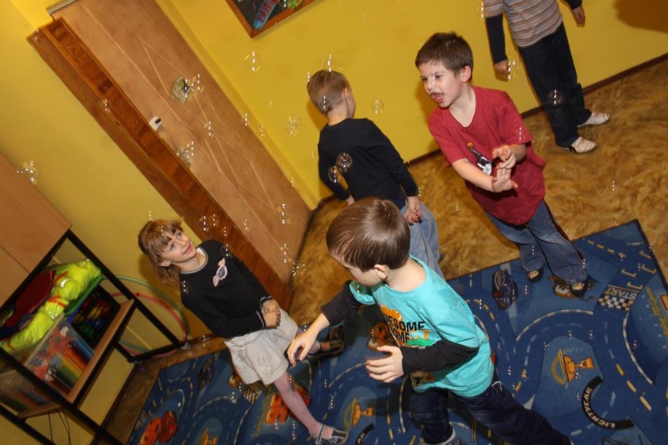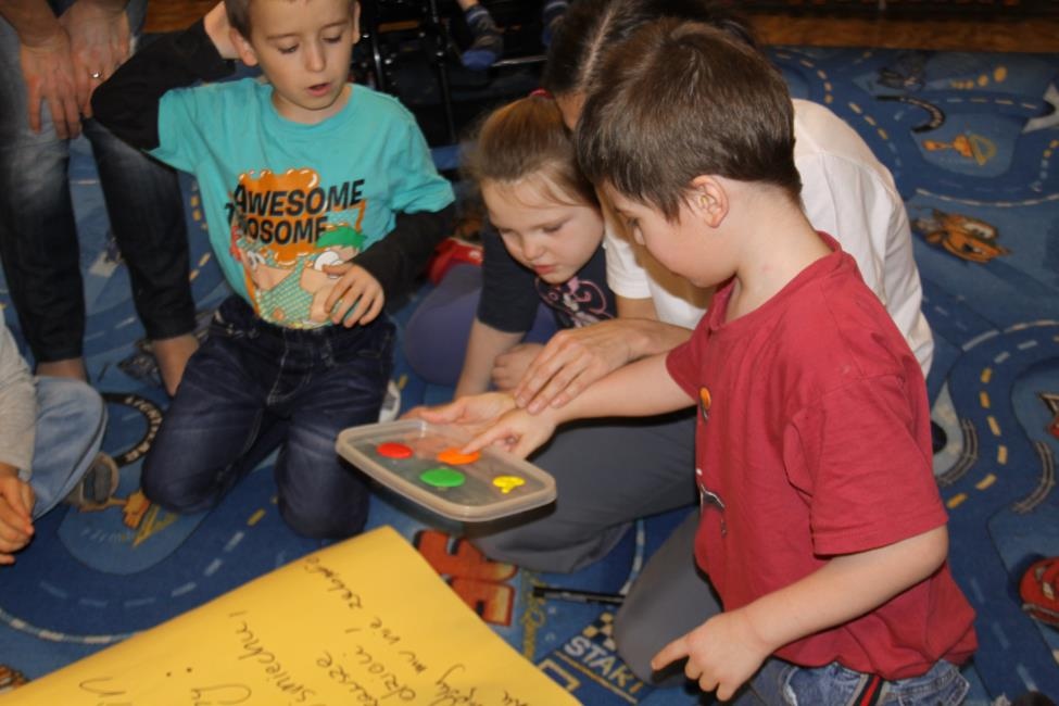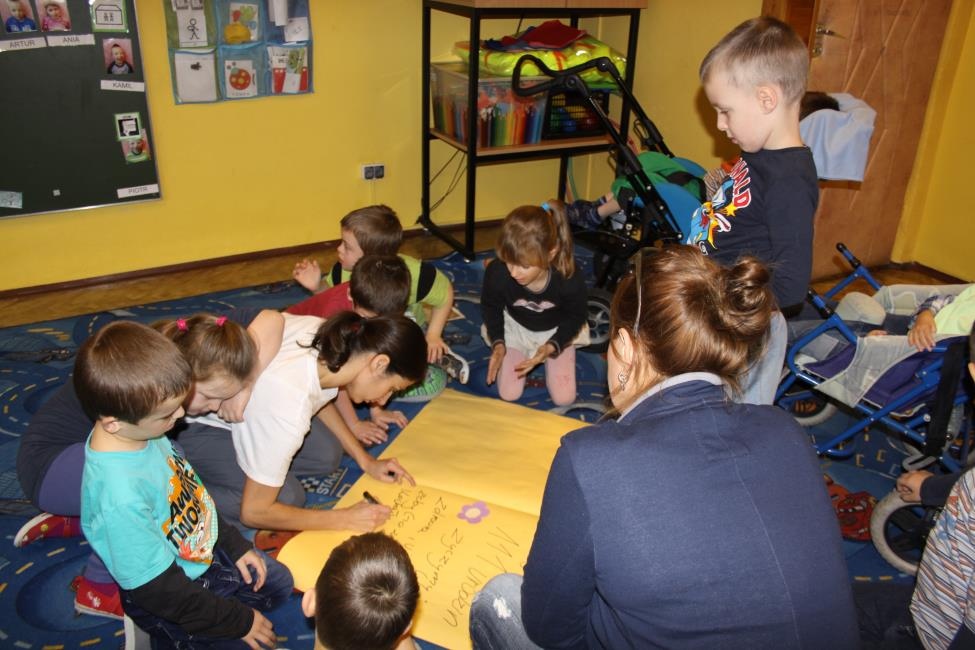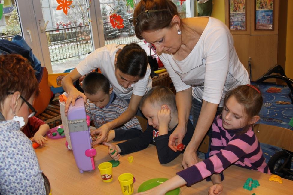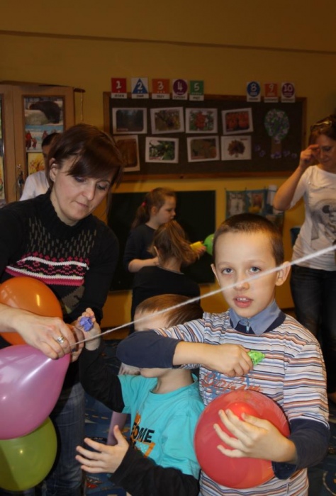 Dzieci zaczęly od przygotowania laurki z podobizną Misia i życzeniami. Następnie zabrały się do dekorowania sali: dmuchały balony, wieszały serpentyny. Potem trzeba było przygotować "poczęstunek" - dzieci zrobiły ciastelinkowe ciasteczka i przygotowały odpowiednią na deser zastawę stołową. Pozostało czekać na upragnionego gościa...
