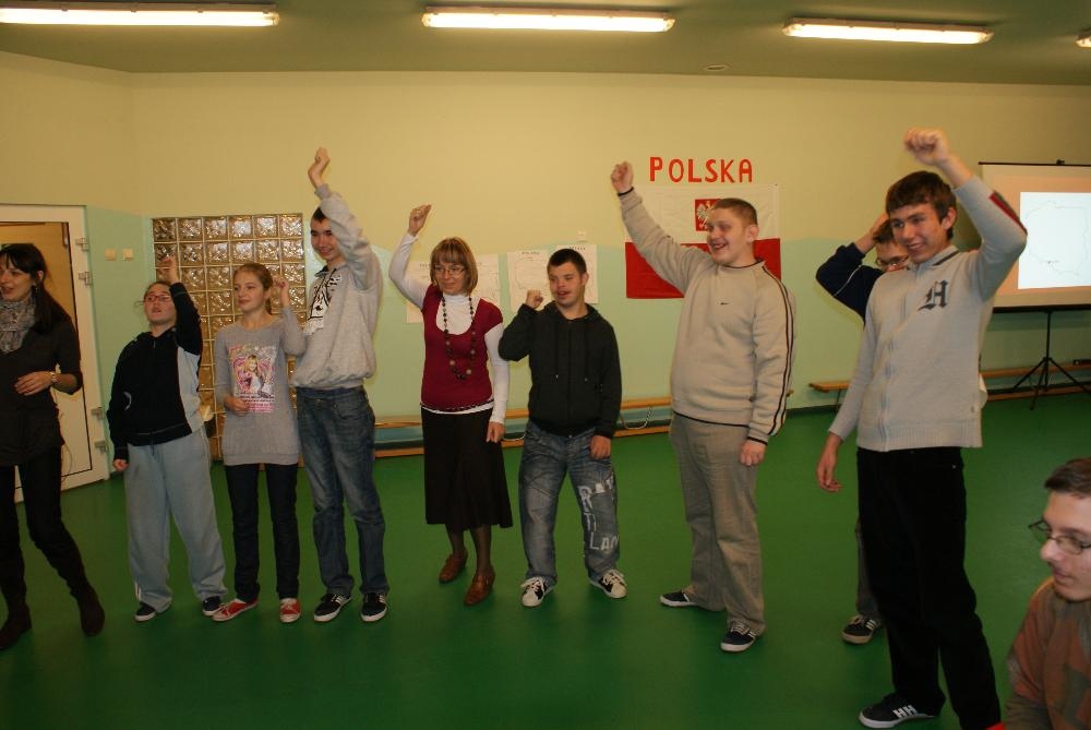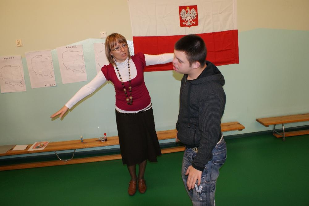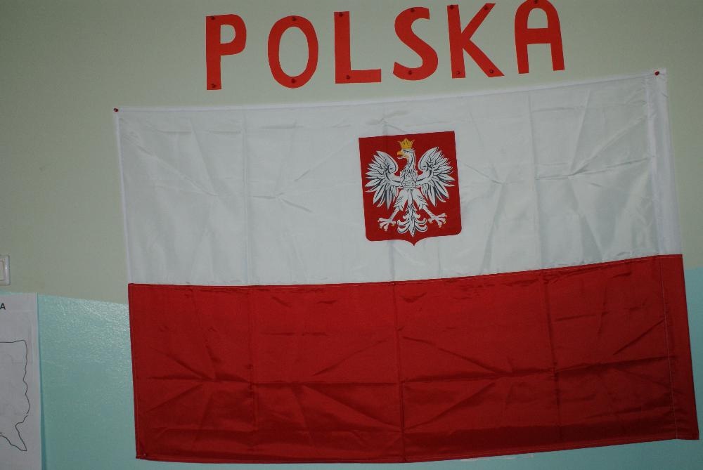 Okazało się też, że uczniowie bez problemów rozpoznają symbole narodowe czyli biało-czerwoną flagę, godło polskie oraz hymn „ Mazurek Dąbrowskiego”, którego odśpiewanie zakończyło naszą lekcję.