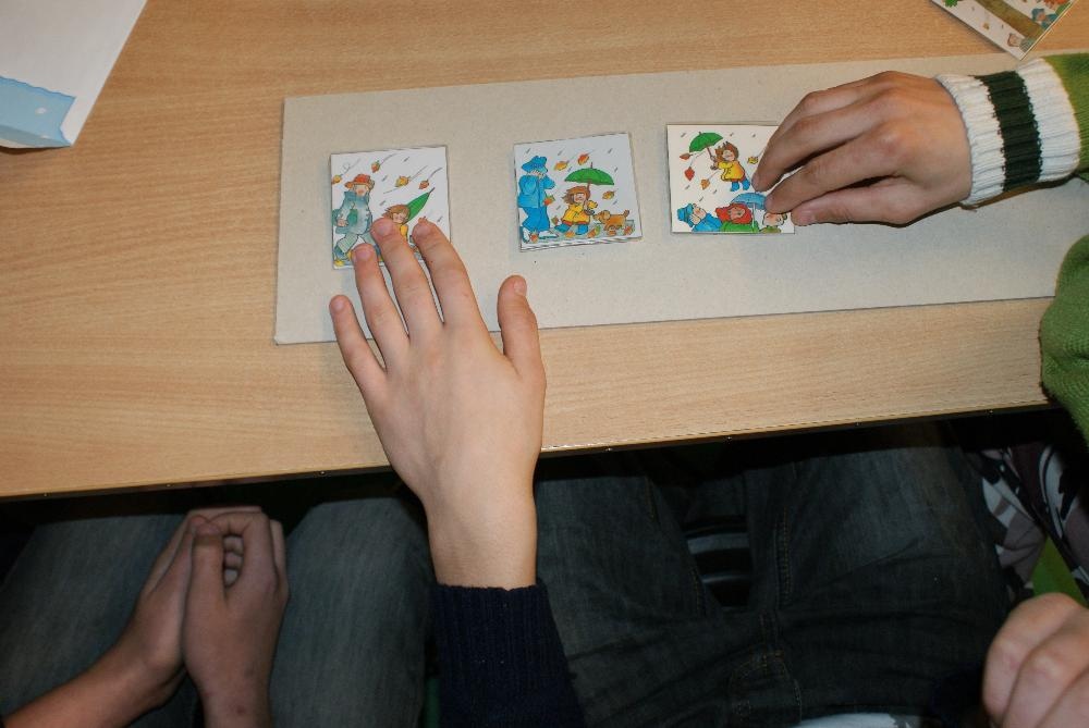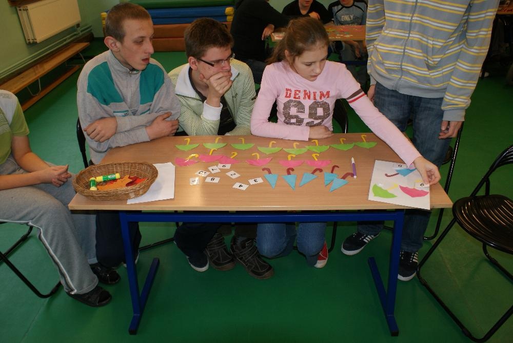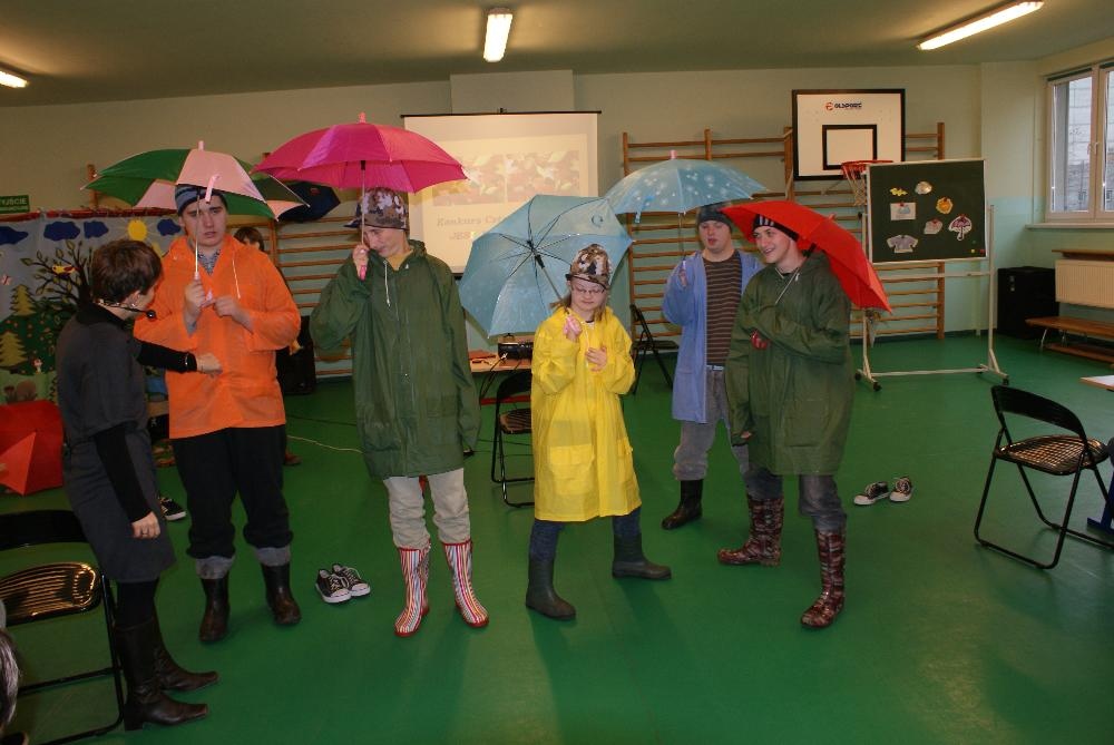 Uczniowie rozpoznawali charakterystyczne dla poszczególnych pór roku symbole, oceniali nastrój piosenek, układali historyjkę obrazkową, ubierali się na jesienny spacer oraz układali puzzle. Mimo deszczowej pogody dobry nastrój konkursu dopisywał i wszyscy spisali się na medal: