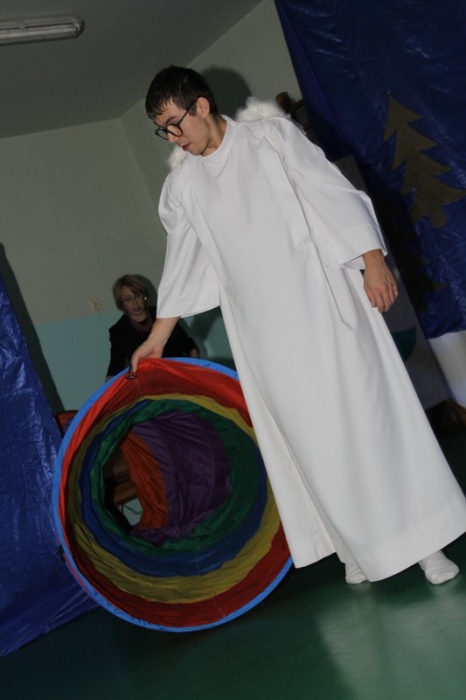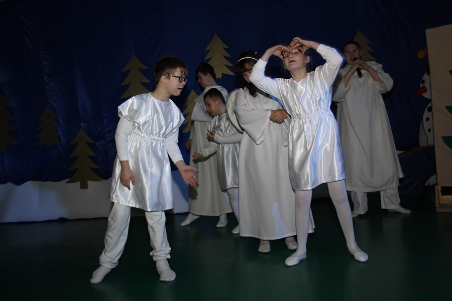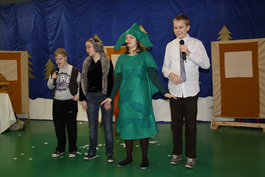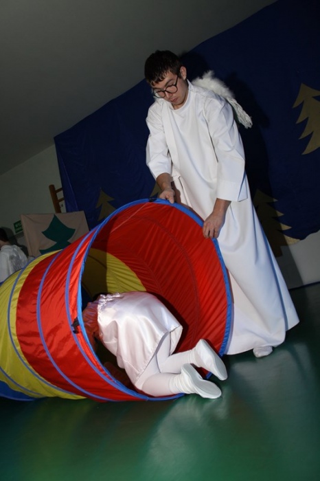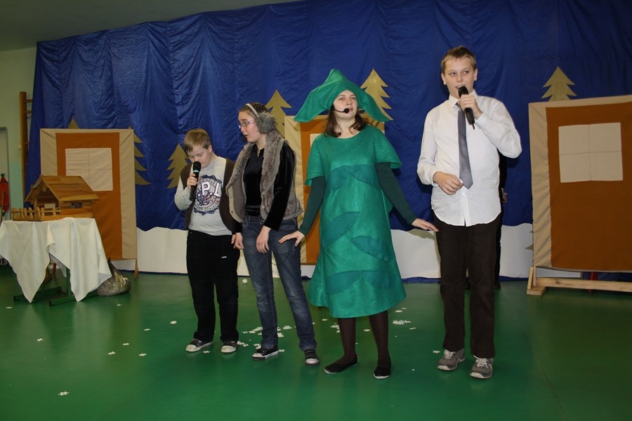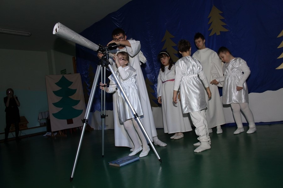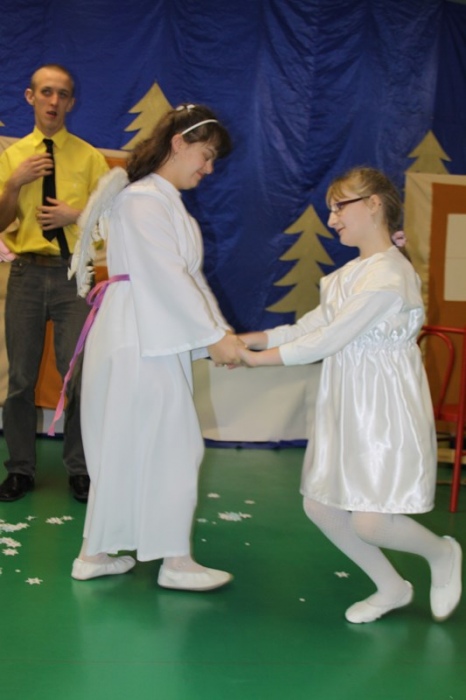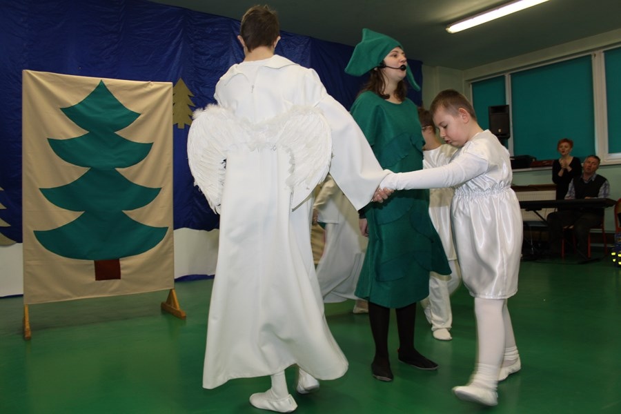 W świąteczną atmosferę wprowadziły wszystkich zebranych – gości, uczniów, pracowników szkoły Aniołki, które wypatrzyły na ziemi piękną choinkę i po nią wyruszyły. Czy ją znalazły? Zapraszamy do ponownego oglądania naszego przedstawienia.