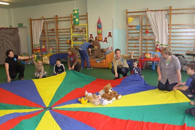 Dnia 25.10.2010 roku do przedszkola zawitał niespodziewany gość - PLUSZOWY MIŚ, który w tym dniu obchodził swoje święto. Ten mały przyjaciel zapragnął pobawić się z najmłodszymi uczniami naszej szkoły. Przedszkolaki miały okazję sprawdzić się w wielu konkurencjach ruchowych, sprawnościowych i nie tylko. Przedszkolaki poszukiwały pluszowego misia w ogromnych pudłach z piłkami, segregowały misie według wzoru, odnajdowały swego przyjaciela po opisie. Wszyscy dobrze się bawili co było widać na twarzach naszych milusińskich, którzy wspólną zabawę z naszym gościem zakończyli podrzucaniem pluszowych misiów na chuście.