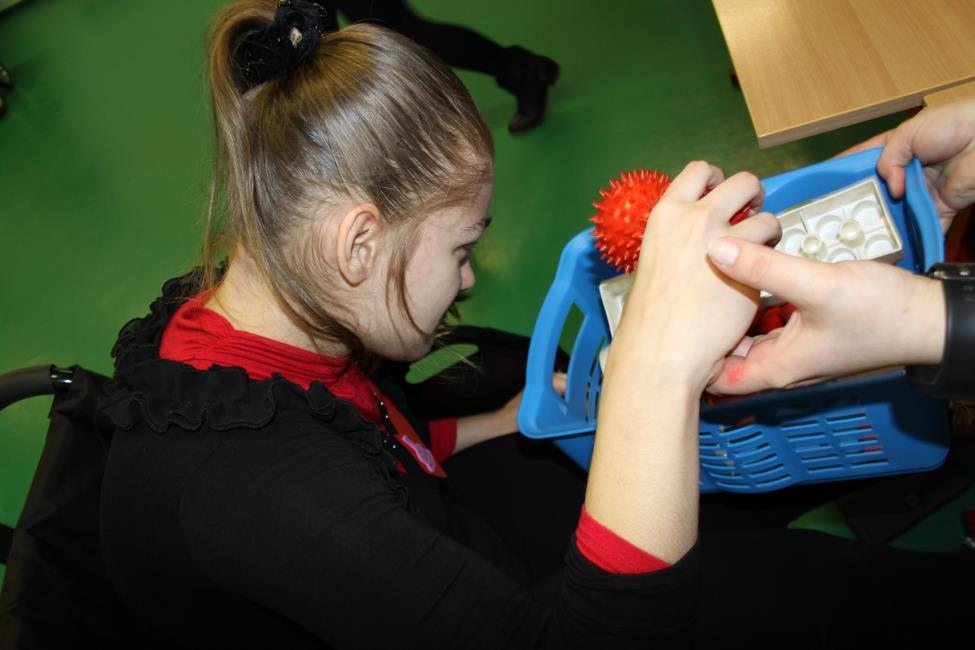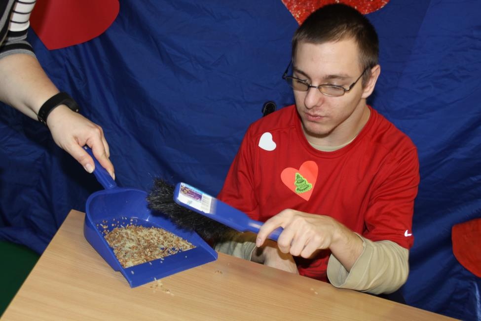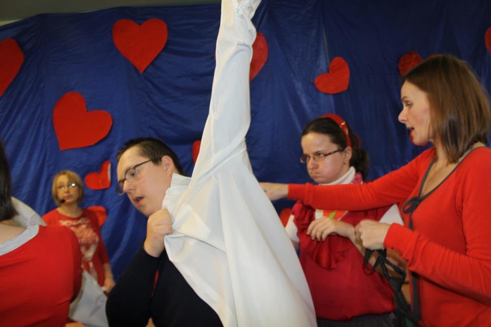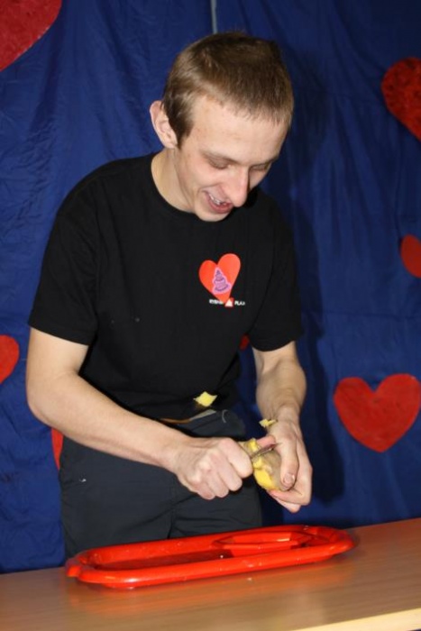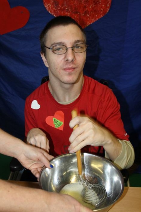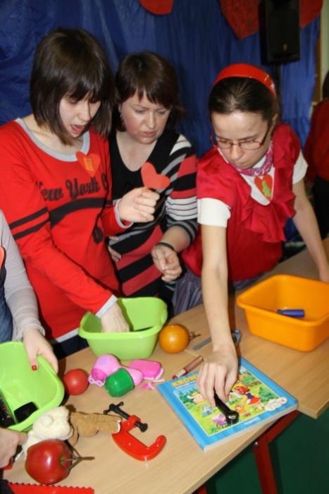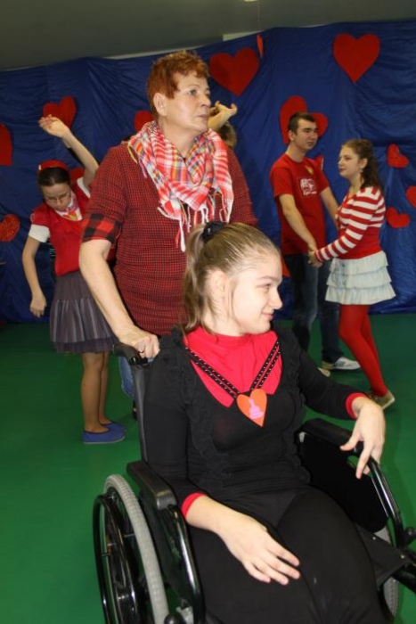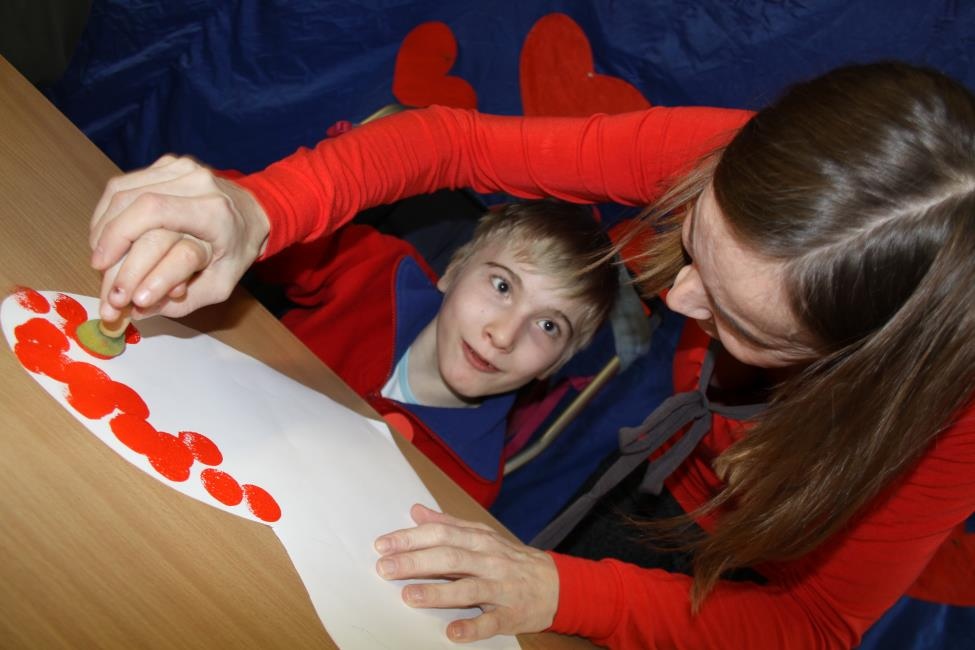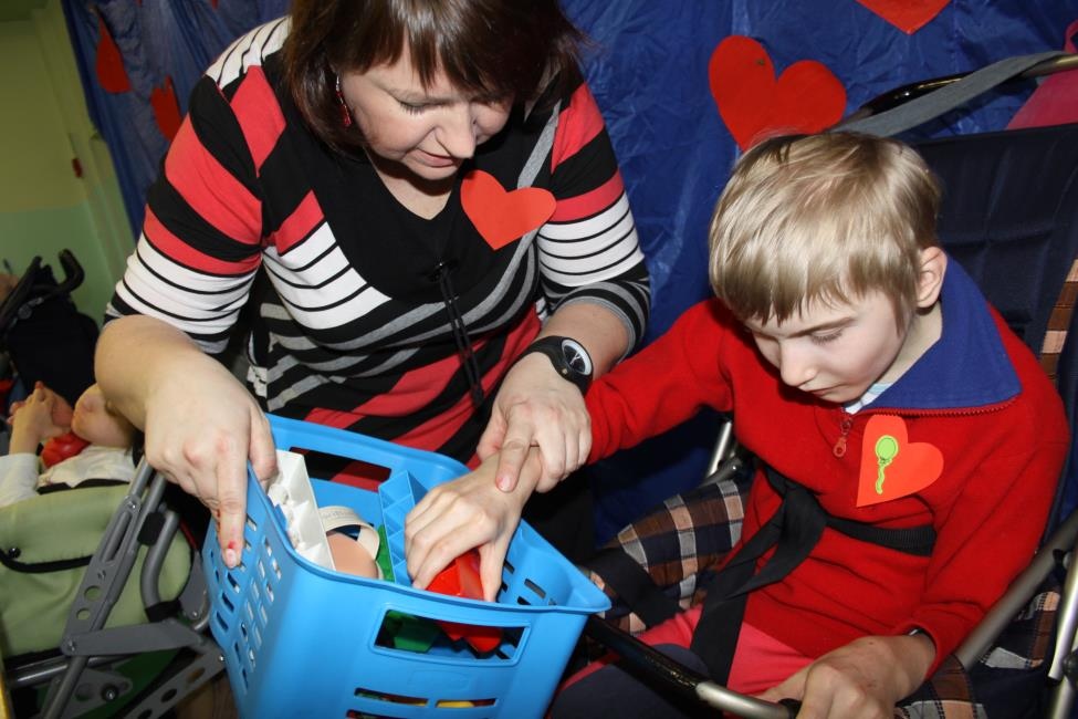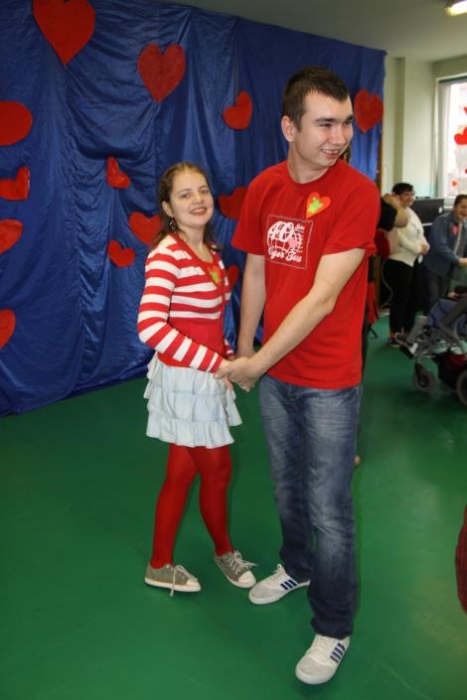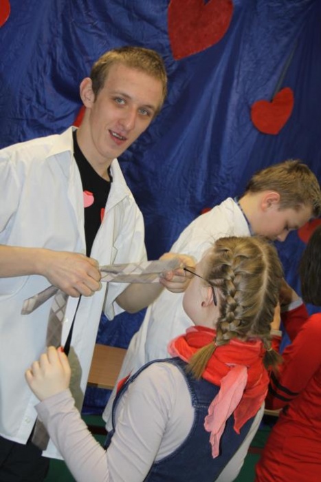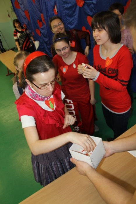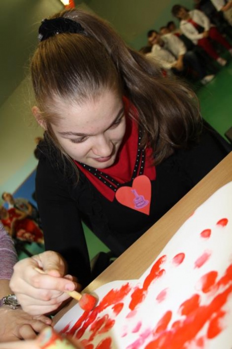 Czoła wyzwaniom musieli stawić także przedstawiciele zespołów rewalidacyjno - wychowawczych, którzy malowali czerwone serca gąbkami i segregowali przedmioty według kolorów. Uwieńczeniem „walentynkowych” zmagań na „Prawdziwą Dziewczynę” i „Prawdziwego Chłopaka” był słodki poczęstunek oraz to, co nasi uczniowie lubią najbardziej - dyskoteka w rytmie największych i najpopularniejszych szlagierów.