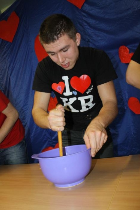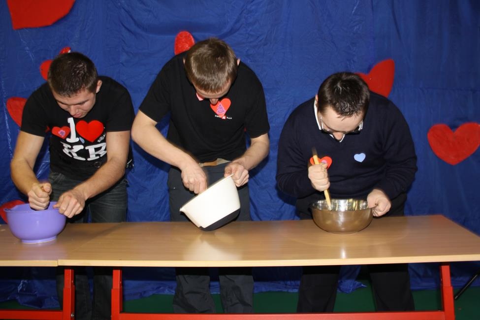 Pięciu kandydatów na „Prawdziwego Chłopaka” - Michał Huba, Dominik Zimoch, Alan Lewandowski, Daniel Chmielewski i Andrzej Motyka przeszło przez prawdziwe „babskie piekło”, bo musieli wykazać się umiejętnościami, które na co dzień nie są raczej ich domeną, a posiadanie których my - kobiety szczególnie sobie cenimy u płci przeciwnej. W obieraniu ziemniaków spore umiejętności zaprezentował Andrzej, który zdradził, że „bardzo lubi te domowe robótki”. W biciu piany z białek wszyscy konkurenci okazali się fachowcami, choć niektórzy tak bardzo chcieli wyprzedzić rywali, że zamiast ścierki do ścierania stołu użyli…własnych rękawów. Prawdziwą zmorą dla naszych chłopaków było zwijanie wełny w kłębek. W plątaninie rąk i wełny prym wiedli Dominik i Andrzej. Na koniec, jak na „Prawdziwego Chłopaka” przystało, trzeba było sprawdzić swoje siły w sprzątaniu, a konkretnie w zamiataniu ryżu i kaszy z podłogi. Tu nasi kandydaci wykazali się ogromnym sprytem i umiejętnością pracy w grupie. Dokonali podziału czynności oraz terenu i z tą jakże nieprzyjemną i „niemęską” robotą uporali się w ekspresowym tempie.