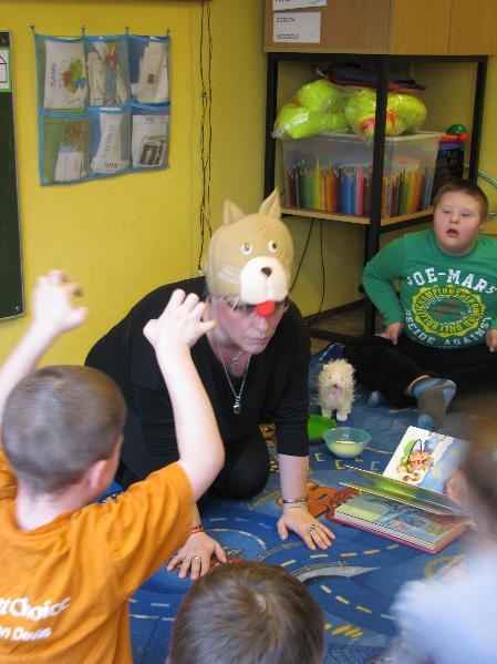 17.01.2014r w piątkowe przedpołudnie przedszkolaki oraz dzieci z I oddziału rewalidacyjno - wychowawczego uczestniczyły w spotkaniu z wierszem w ramach projektu „Cała Polska czyta dzieciom”, które rozpoczęło się teatralnym trzykrotnym dźwiękiem dzwoneczka.