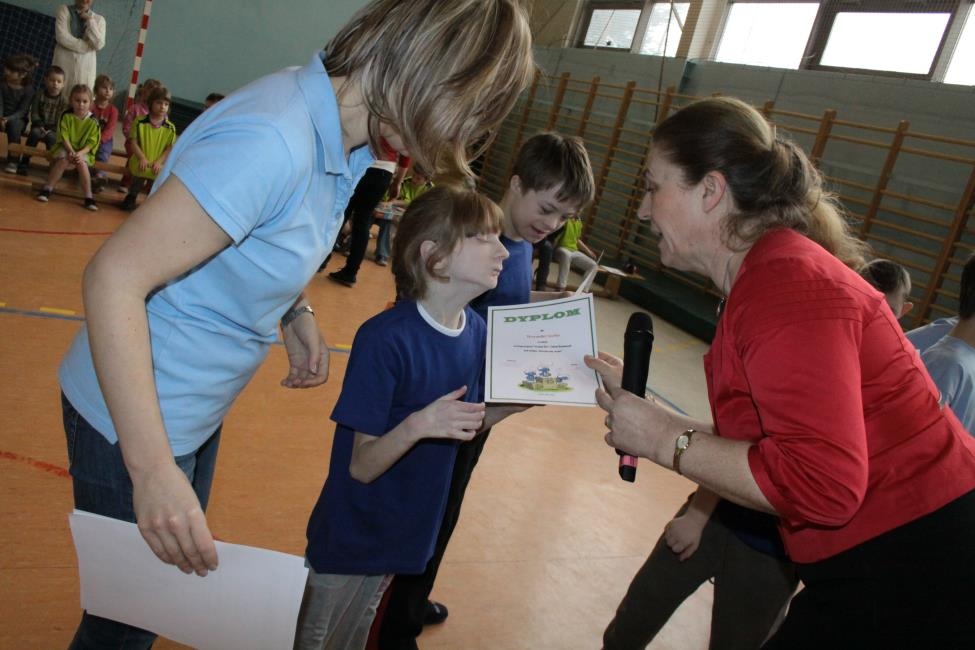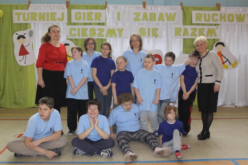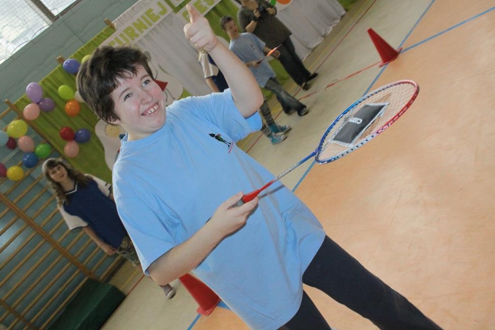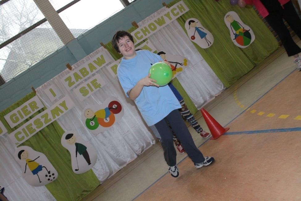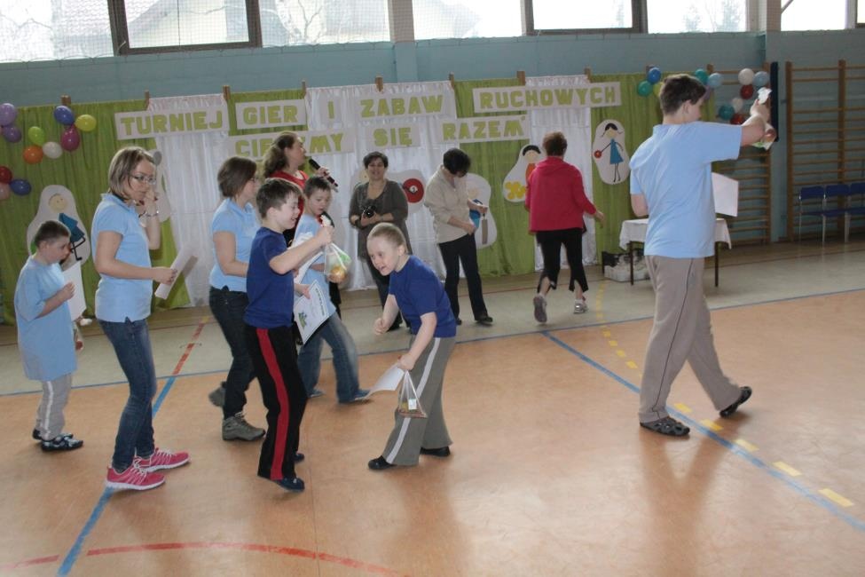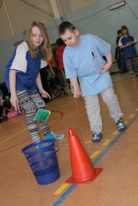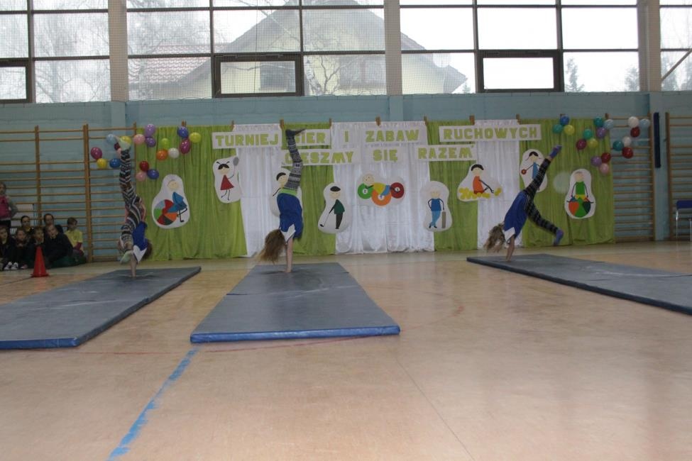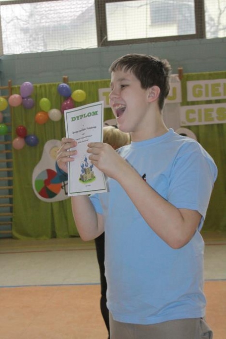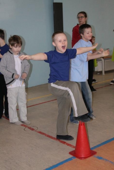 Dnia 20 lutego 2014r., na zaproszenie zaprzyjaźnionego Zespołu Szkolno Przedszkolnego nr 1 w Rybniku Wielopolu, grupa uczniów klas III szkoły podstawowej miała okazję rywalizować podczas Turnieju gier i zabaw ruchowych pod hasłem: "Cieszmy się razem". Impreza miała charakter integracyjny - rywalizacja odbywała się w mieszanych drużynach, których skład stanowili również uczniowie oddziałów integracyjnych dwóch rybnickich szkół. Nasi podopieczni w zaproponowanych konkurencjach poradzili sobie rewelacyjnie - płynnie turlali piłki, celnie rzucali woreczkami, przenosili woreczki na rakietkach, sprawnie pokonywali przeszkody. W przerwach wszyscy mieli okazję podziwiać taneczno-akrobatyczne występy gospodarza zawodów. Po zakończonej rywalizacji wszystkie dzieci dumne i szczęśliwie odebrały zazłużone dyplomy i nagrody. Gratulujemy!!!