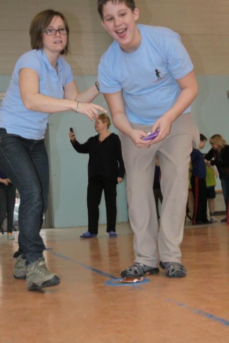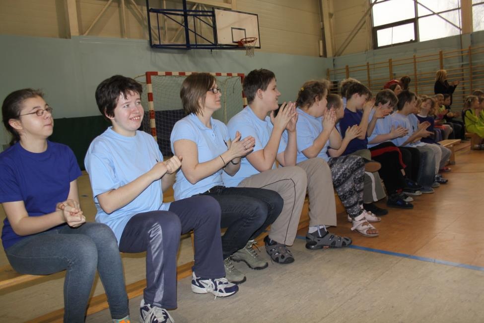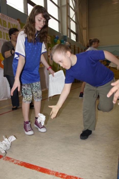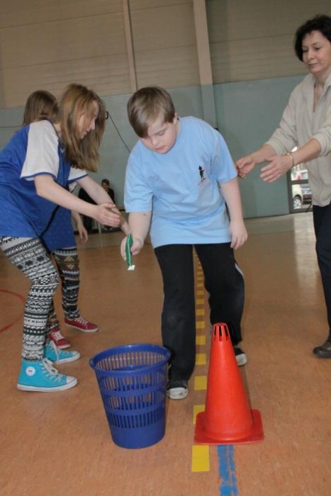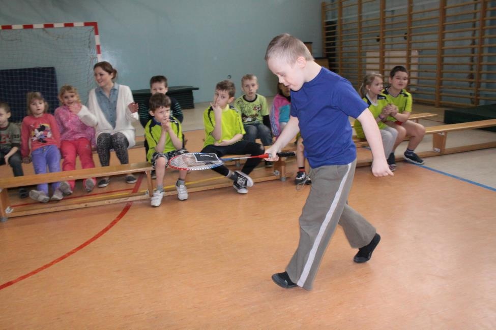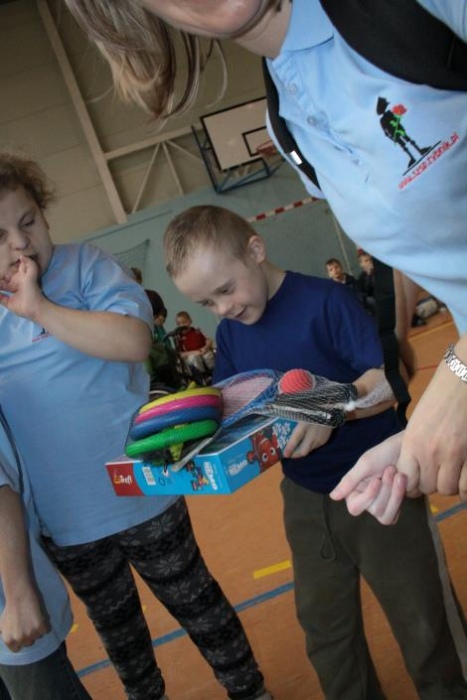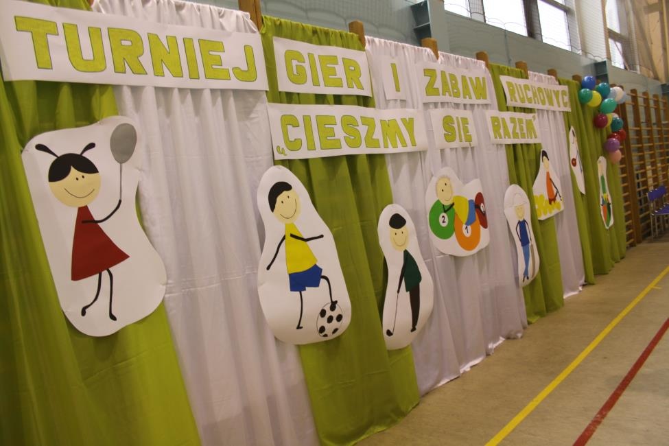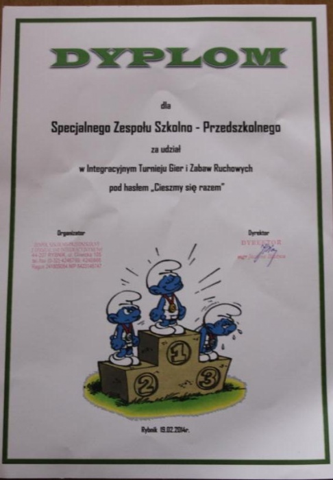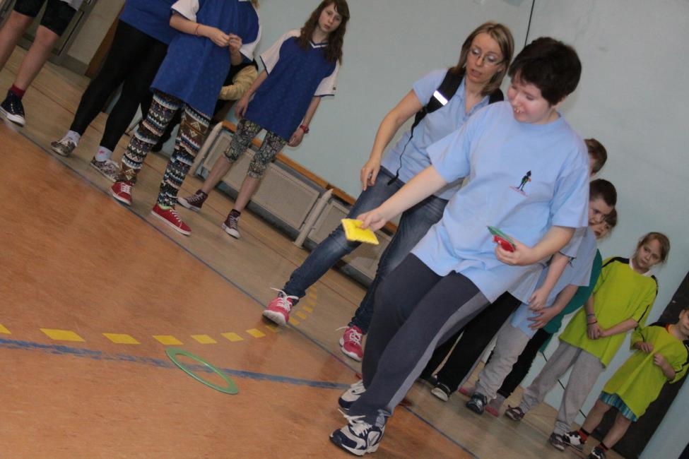 Dnia 20 lutego 2014r., na zaproszenie zaprzyjaźnionego Zespołu Szkolno Przedszkolnego nr 1 w Rybniku Wielopolu, grupa uczniów klas III szkoły podstawowej miała okazję rywalizować podczas Turnieju gier i zabaw ruchowych pod hasłem: "Cieszmy się razem". Impreza miała charakter integracyjny - rywalizacja odbywała się w mieszanych drużynach, których skład stanowili również uczniowie oddziałów integracyjnych dwóch rybnickich szkół. Nasi podopieczni w zaproponowanych konkurencjach poradzili sobie rewelacyjnie - płynnie turlali piłki, celnie rzucali woreczkami, przenosili woreczki na rakietkach, sprawnie pokonywali przeszkody. W przerwach wszyscy mieli okazję podziwiać taneczno-akrobatyczne występy gospodarza zawodów. Po zakończonej rywalizacji wszystkie dzieci dumne i szczęśliwie odebrały zazłużone dyplomy i nagrody. Gratulujemy!!!