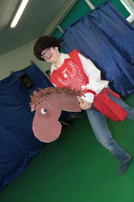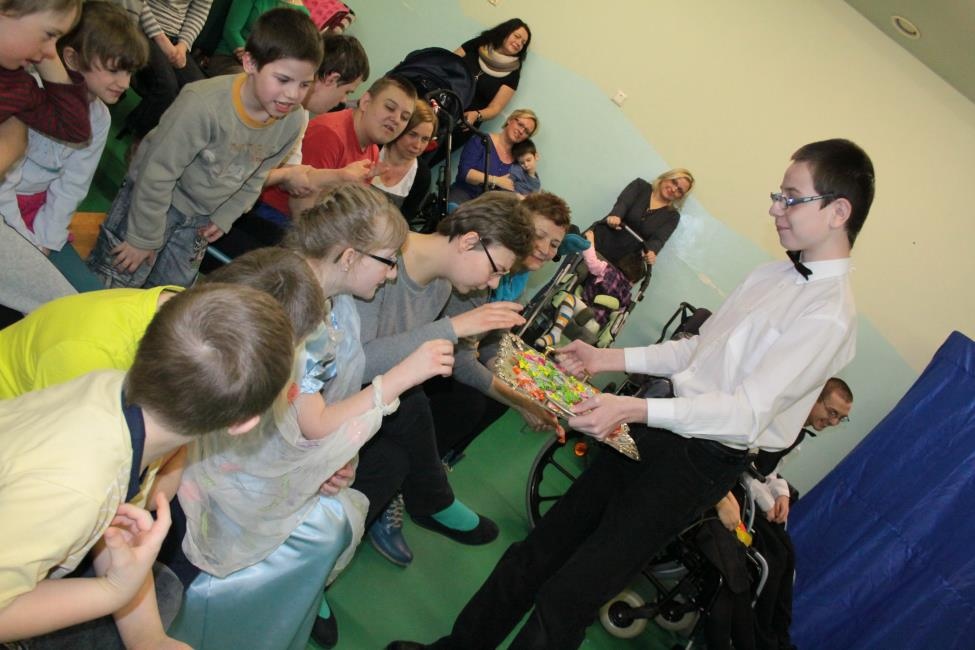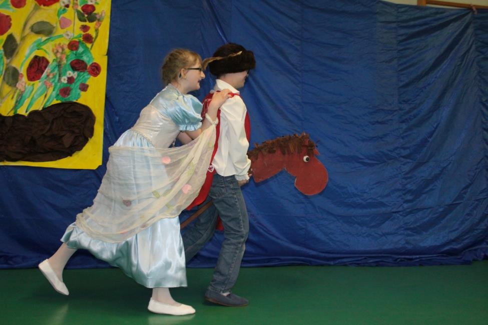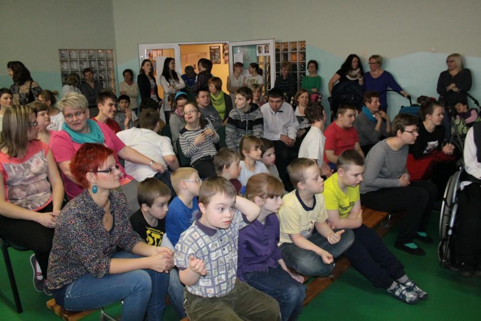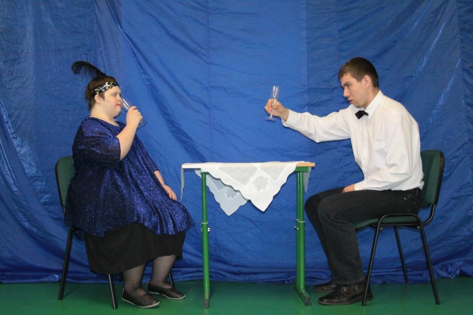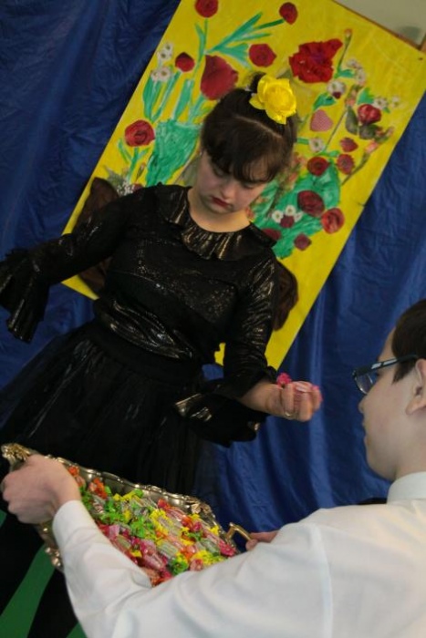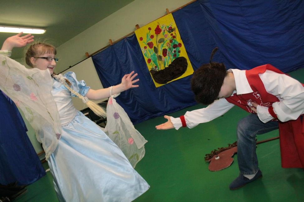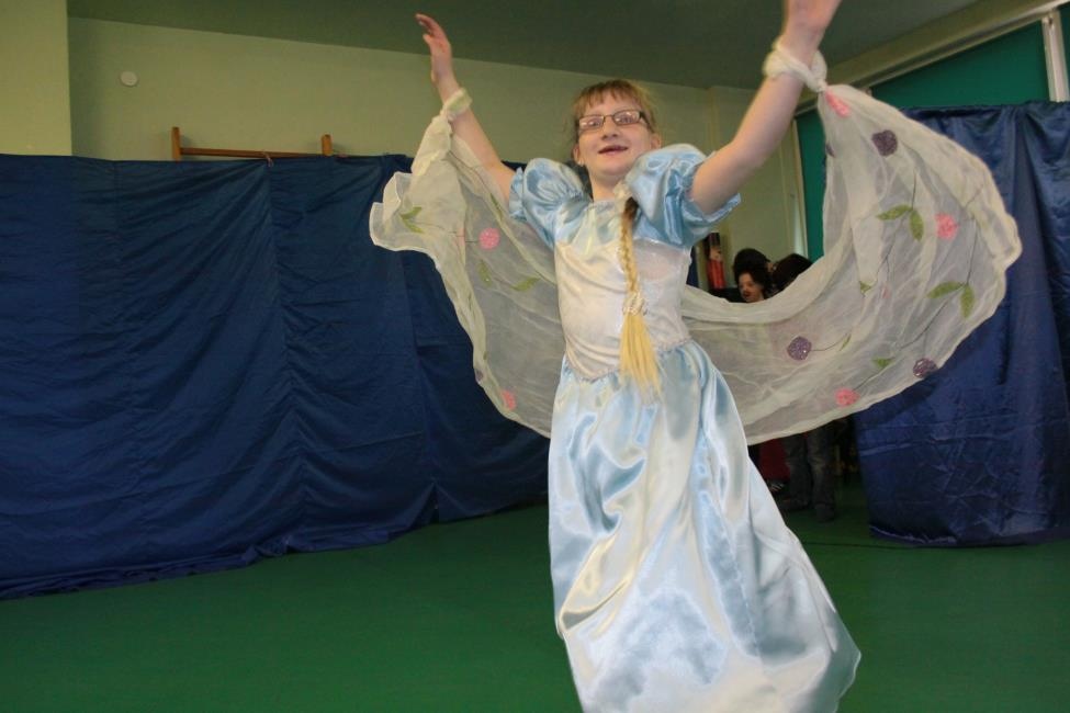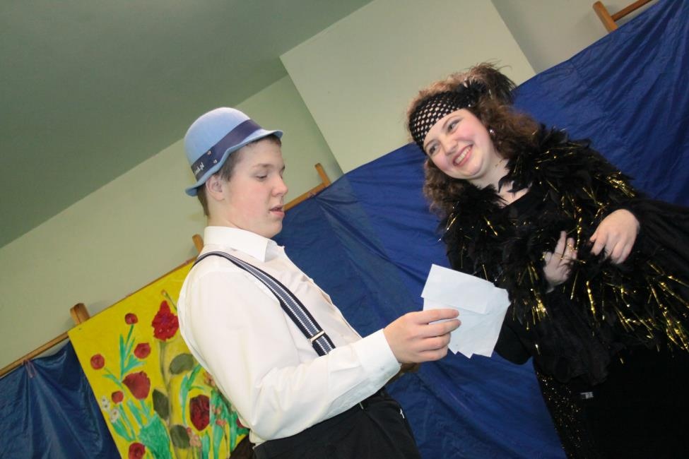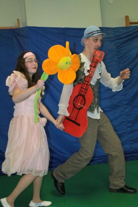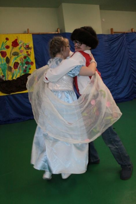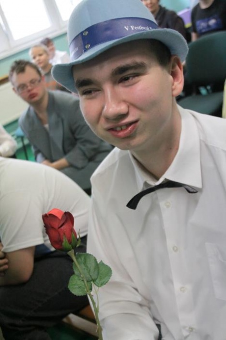 Przyszła również pora na występy naszych uczniów - członków zespołu wokalno - teatralnego BAJ, pod kierownictwem pani Moniki Ryszki. Uczniowie zainscenizowanymi utworami muzycznymi wprowadzili nas w romantyczny nastrój. Odegrane i wytańczone utwory prezentowały różne "sposoby" na to, jak mężczyna może zabiegać o kobietę. Zarówno gorące tango, romantyczna serenada pod balkonem ukochanej, sposób na "cukierka", zachwyt nad tańcem (w rytm "Ona tańczy dla mnie"), czy róża dla ukochanej, okazały się skuteczne. Wśród zgromadzonej publiczności największą sympatię i uznanie wzbudził jednak sposób zdobywania kobiety staropolskim obyczajem. (Nie ma to jak rycerz na białym koniu...). Nasi podopieczni, prezentowali się niezwykle elegancko, szczególnie dziewczyny, które z tej okazji odwiedziły "salon" fryzjerski i kosmetyczny. Jeden z naszych panów, również postanowił odegrać scenkę - i zdobyć panie na "cztery kółka"....