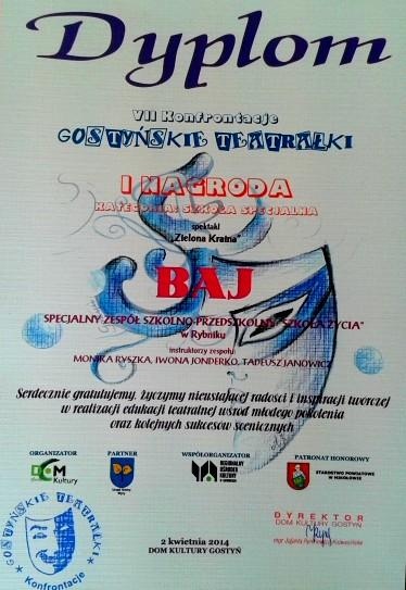 02 kwietnia 2014 roku zespół BAJ wystąpił podczas gali wieńczącej VII konfrontacje teatralne w Domu Kultury w Gostyni. Przegląd odbył się pod honorowym patronatem Starosty Mikołowskiego.