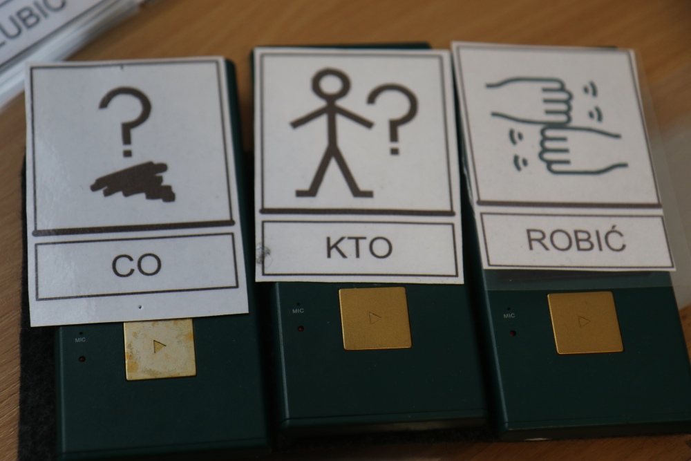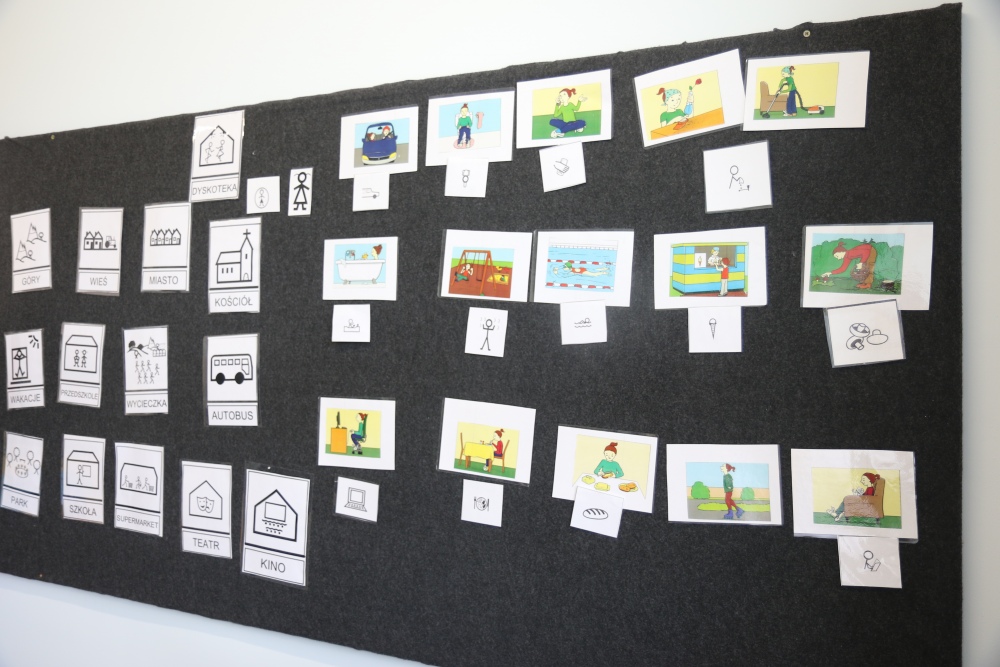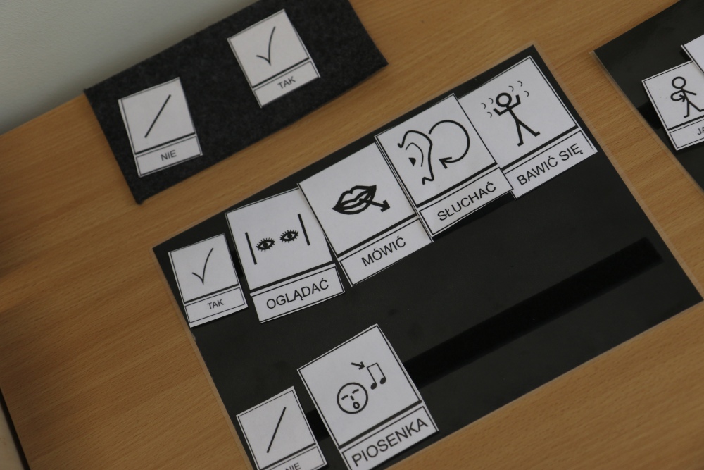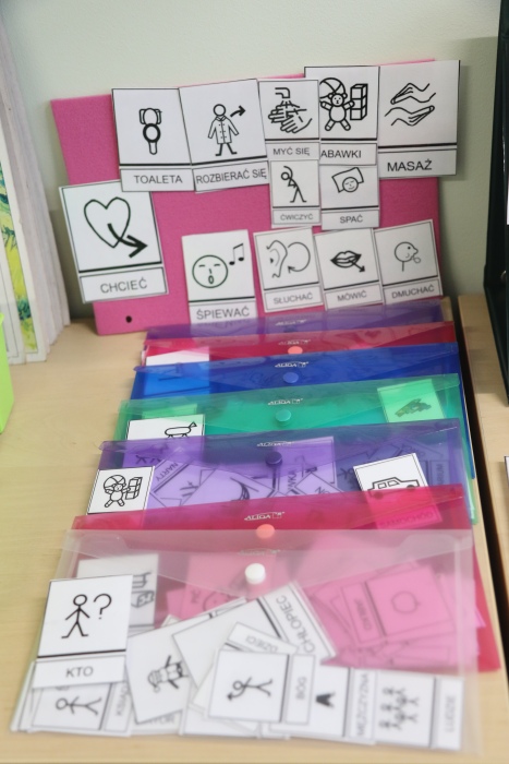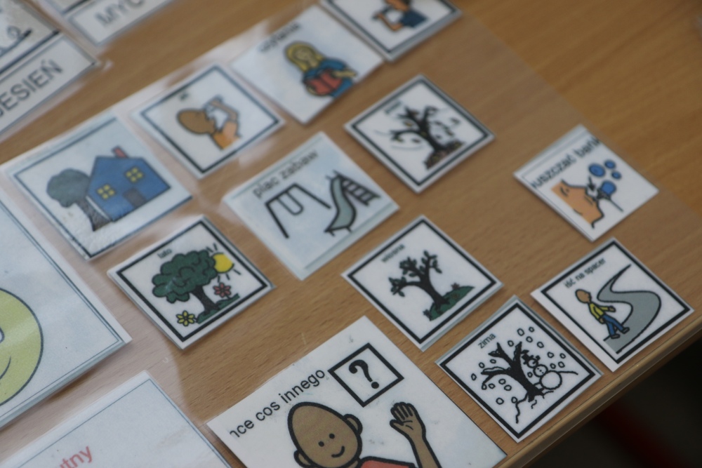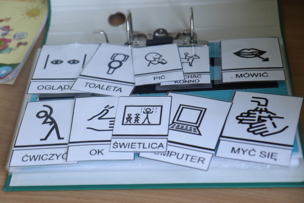 - znaki graficzne (system Makaton, PCS, Mówik)