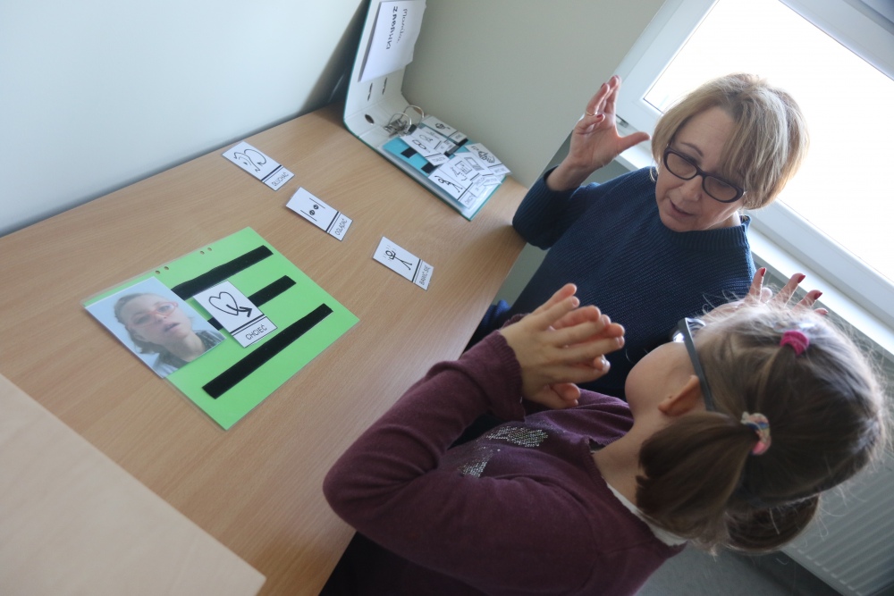 - znaleźć zastępczy sposób porozumiewania się gdy osoba nie zaczyna mówić,