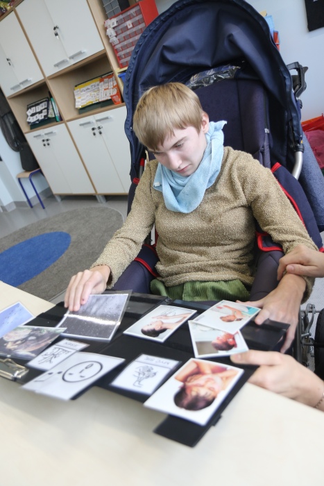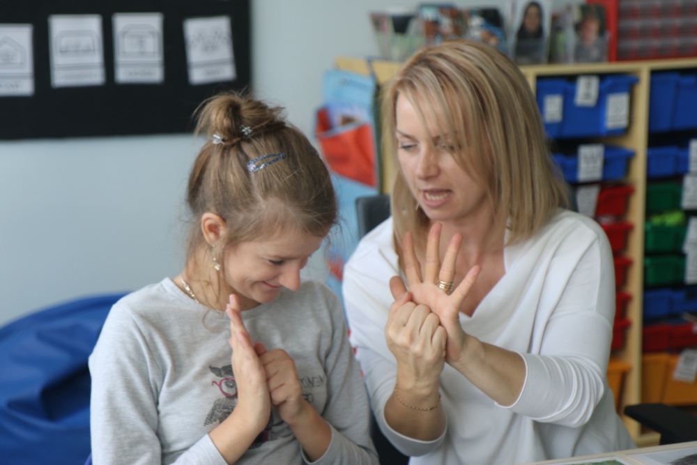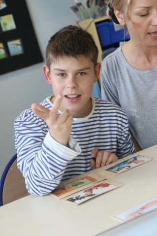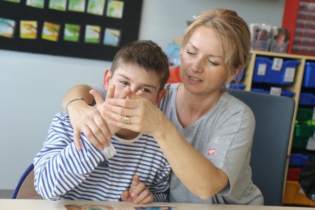 - znaki manualne (program językowy Makaton, elementy języka migowego) - obrazki, pismo, podpieranie mowy gestem, znaki przestrzenno dotykowe.