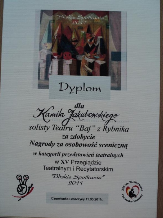 X Ogólnopolski Festiwal Twórczości Teatralno – Muzycznej Osób Niepełnosprawnych Intelektualnie- II etap „Albertiana 2010” Chrzanów – Kraków (02.2010) |